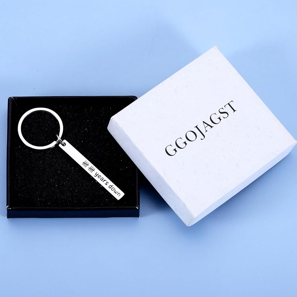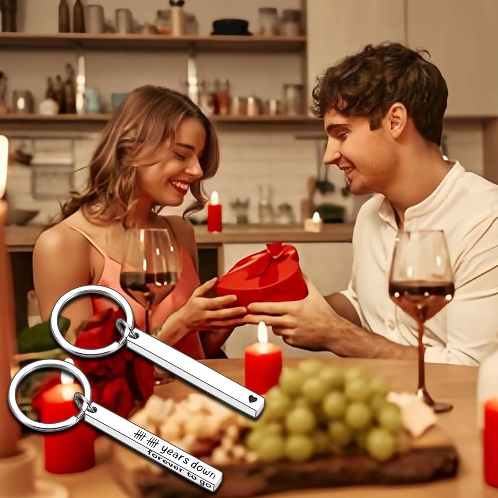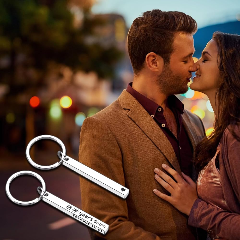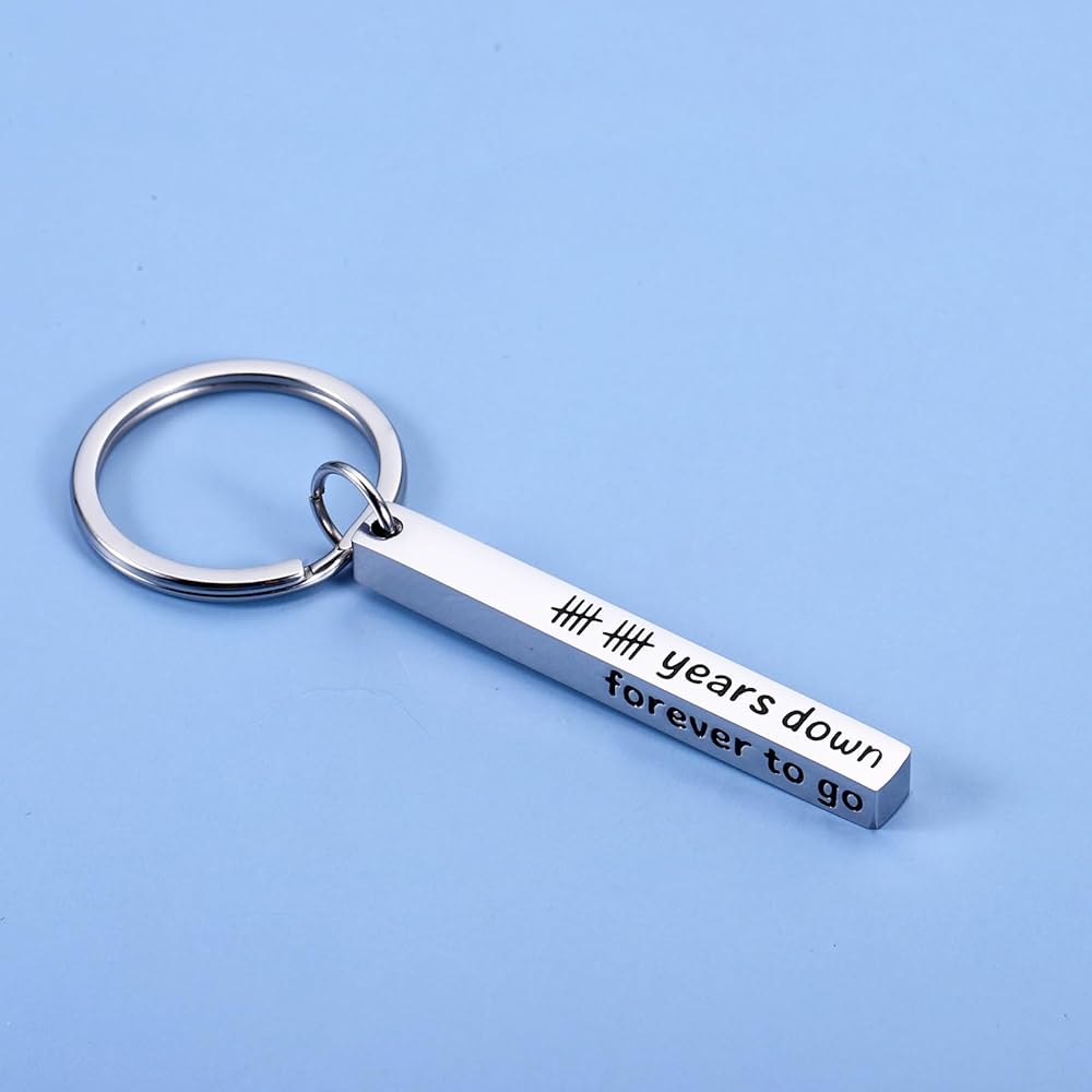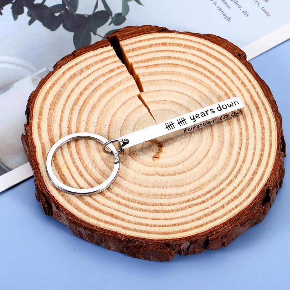 10 Year Anniversary Gifts--Wedding anniversary years are significant, milestone anniversary years stand out as extra-special.The keychain engraved with"10 years down, forever to go."is a romantic gift idea for wife and husband to celebrate the 11th years wedding. boyfriend,bridegroom, fiance,bride,fiance,spouse,soulmate,lesbian,gay, spouse on aniversary, wedding day, valentine day and Christmas, which would be an unexpected surprise and make her/him have a happy smile.