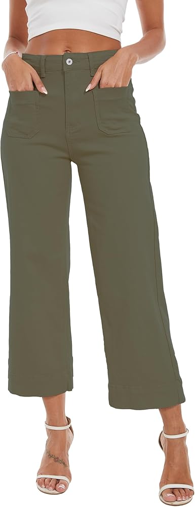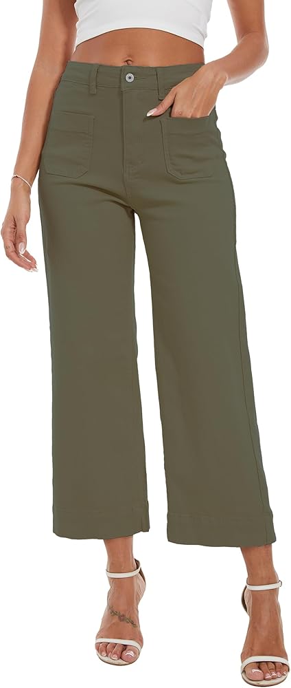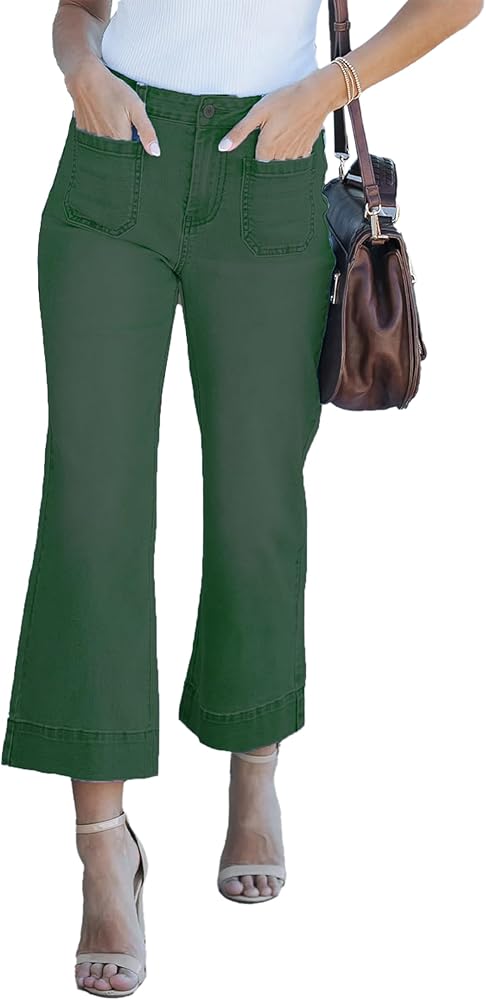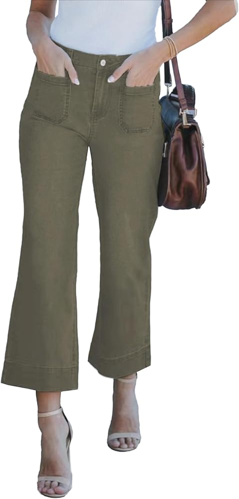 القماش: جينز قصير بأرجل واسعة للنساء عصري مصنوع من قماش الدنيم القابل للتمدد، وهو مريح ومسامي، هذا الجينز الكابري للسيدات يبلغ درزة داخلية 23-24 بوصة
