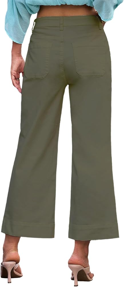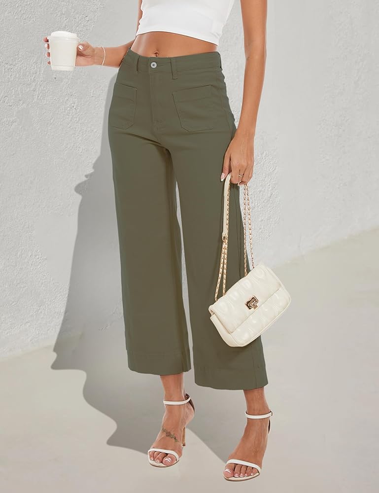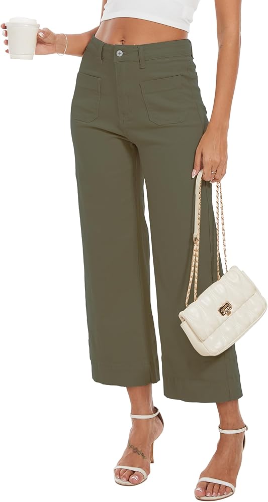 المزايا: يتميز البنطلون القصير ذو الساق الواسعة للسيدات بخصر عالٍ وساق واسعة سهلة الارتداء وساق واسعة وسحاب وزر للإغلاق، وجيوب أمامية