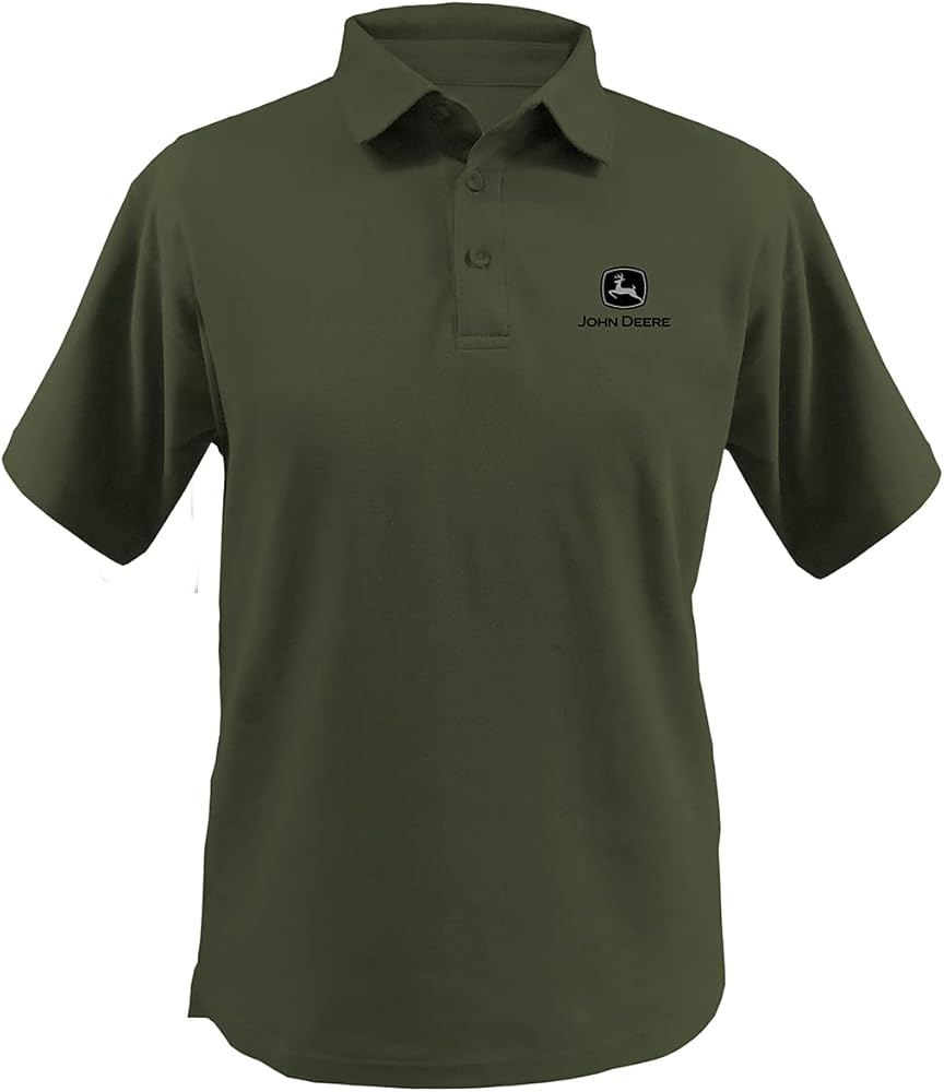 قميص بولو رجالي من John Deere ذو أداء شعاري - زيتوني - كبير