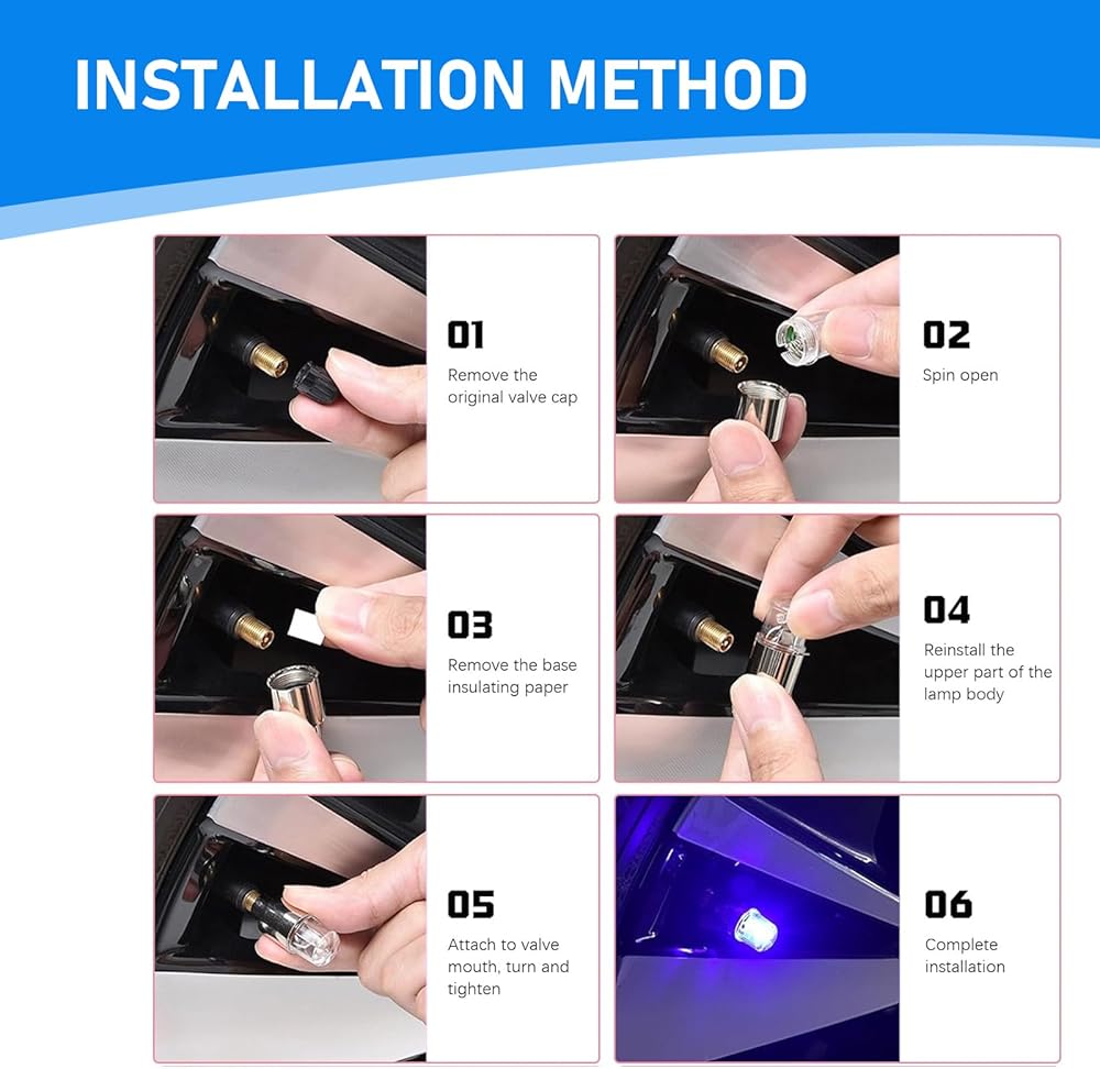 Car Tire Valve: The light bulb is designed to be installed on the car tire valve and connected to the air pressure sensor to trigger the flashing function by sensing changes in air pressure. Installation is quick and easy.