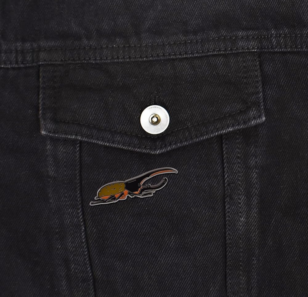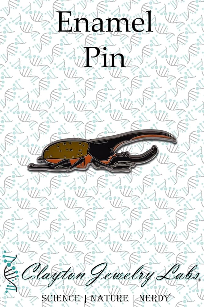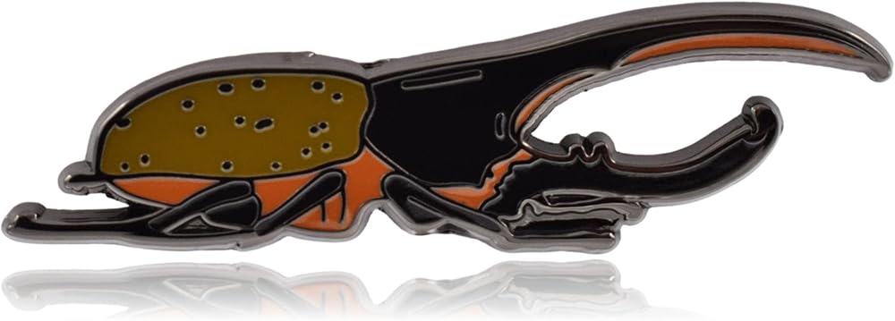 - دبوس من المينا الصلب من Hercules Rhinoceros Beetle مع معدن أسود