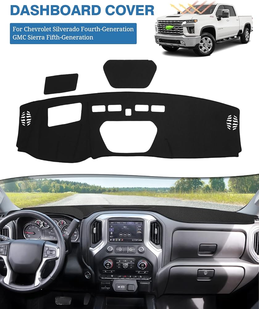 غطاء لوحة أجهزة القياس FIILINES متوافق مع Chevy Silverado/GMC Sierra 1500 2019-2023 (غير مناسب مع تنبيه الاصطدام الأمامي) غطاء لوحة أجهزة القياس واقي شبكي بدون وهج