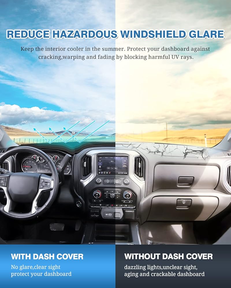تصميم أملس وغير قابل للانزلاق: غطاء لوحة أجهزة القياس FIILINES لسيارة Chevy يحافظ على ثباته ويحافظ على مظهر جميل ومسطح، ويتجنب البقع العمياء ويحسن سلامة القيادة؛ لا داعي للقلق بشأن الانزلاق أثناء القيادة بسبب استخدام دعامة السيليكون المقاومة للانزلاق