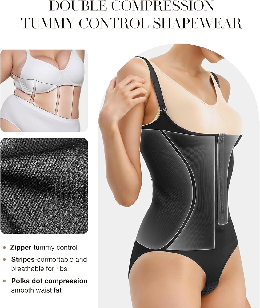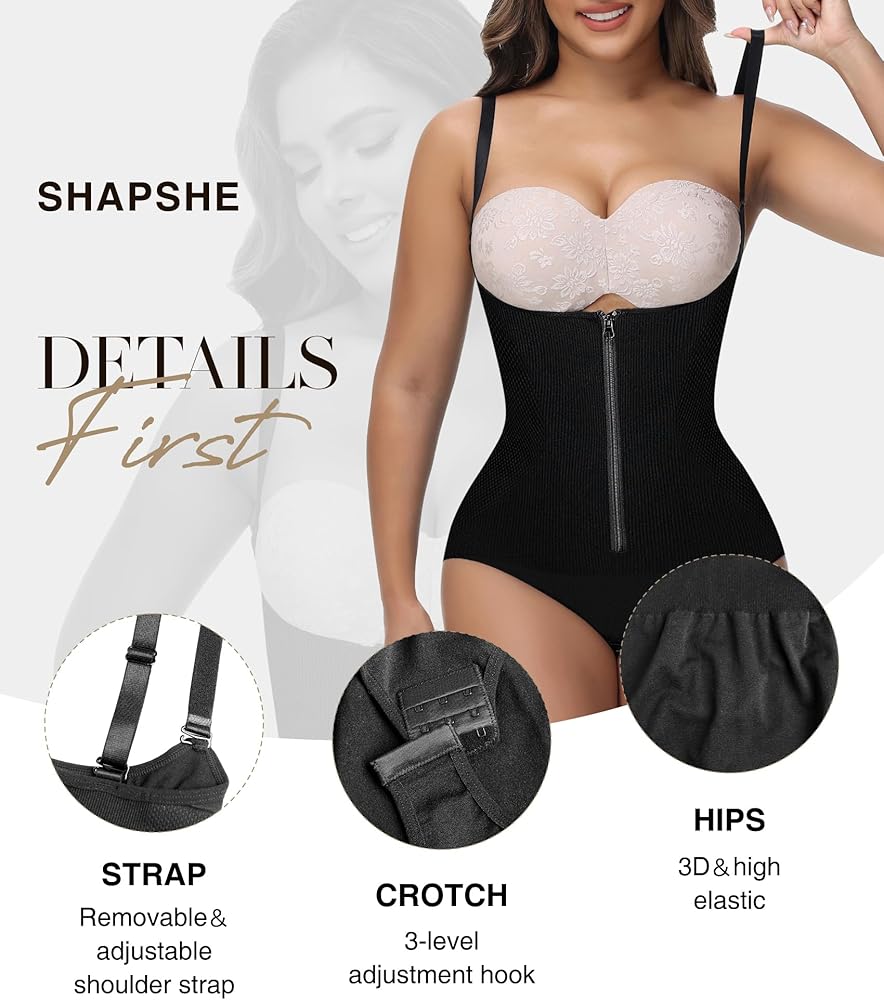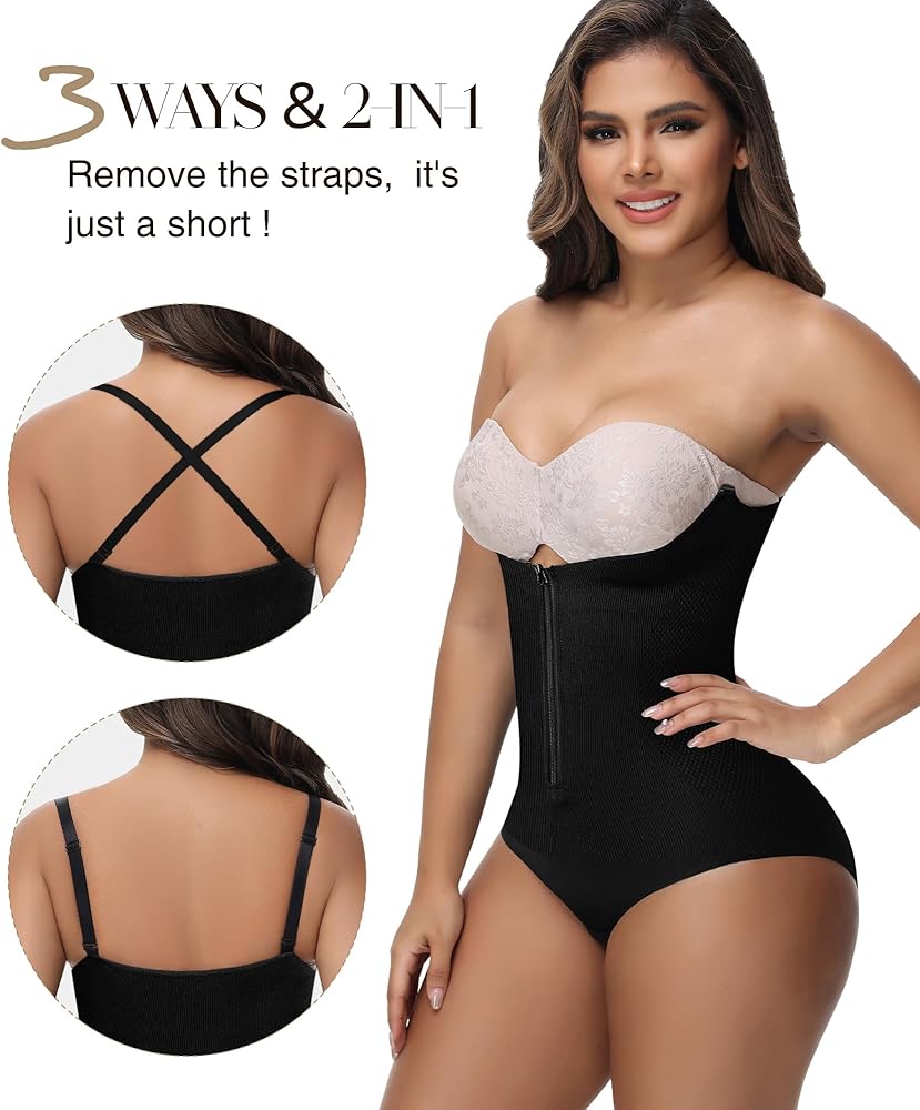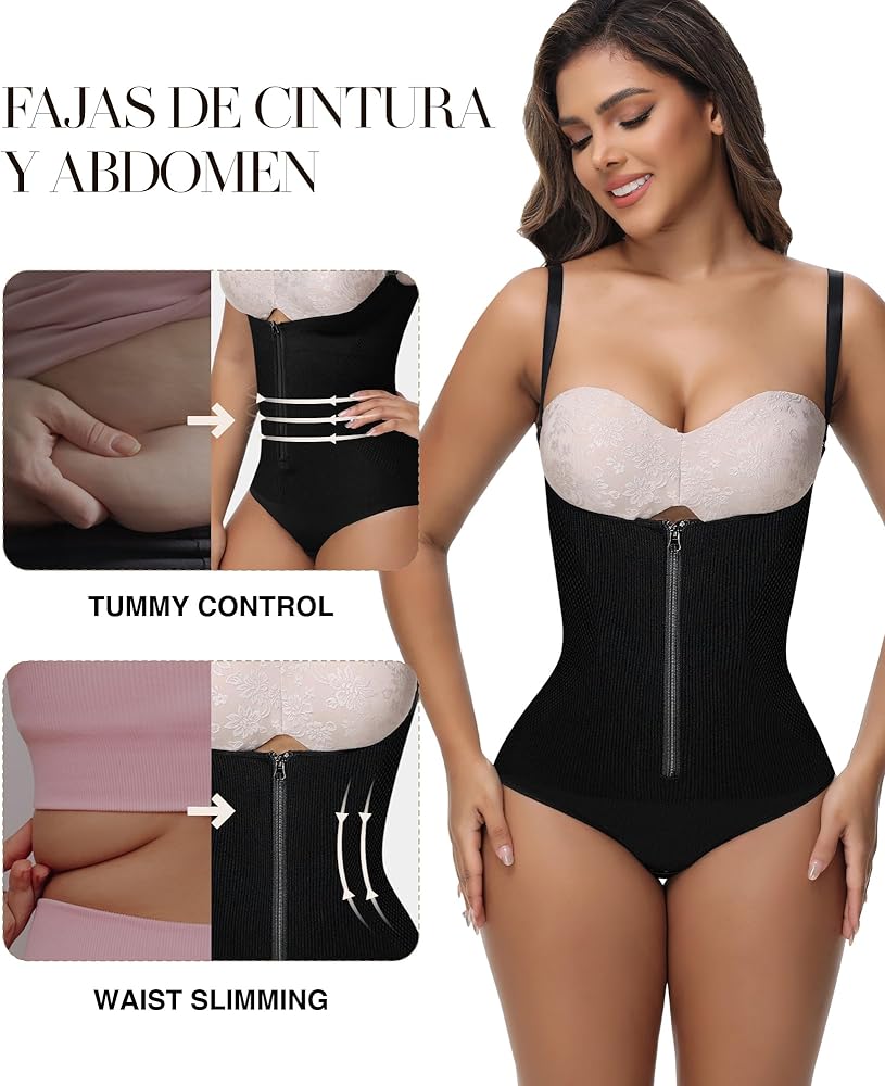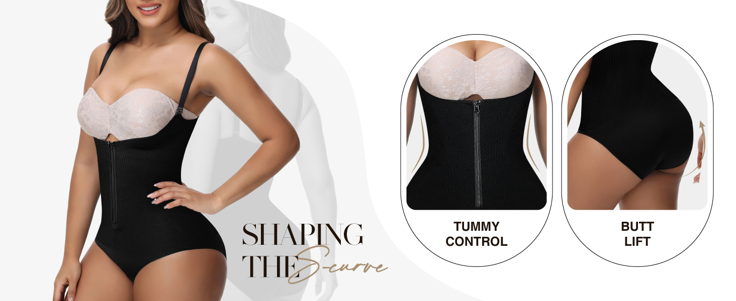 【 ملابس للتحكم في البطن】 تحتوي ملابس الجسم بدون حمالات على مطبوعات ثلاثية الأبعاد على أحزمة الخصر الجانبية لضغط الدهون حول الخصر، وخطوط مرنة على الأضلاع لضمان الراحة والتهوية، وسحاب على البطن لتنعيم دهون البطن.