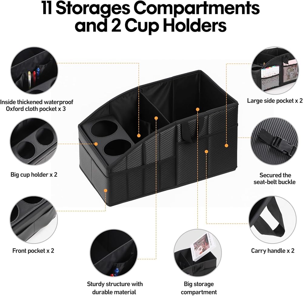 【منظم جيد لضروريات العمل】مناسب للمقعد الأمامي. يحتوي هذا المنظم على الكثير من الجيوب. قوي بما فيه الكفاية للاستخدام؛ محفظة، صندوق مناديل، مناديل مبللة لليدين، مخطط أسبوعي/دفاتر ملاحظات، أقلام/أدوات كتابة، لوازم مكتبية، معقم لليدين، إلخ. تصميم مانع للانزلاق وسهل التركيب. إنها قابلة للطي، يمكنك طيها عندما لا تحتاج إليها.