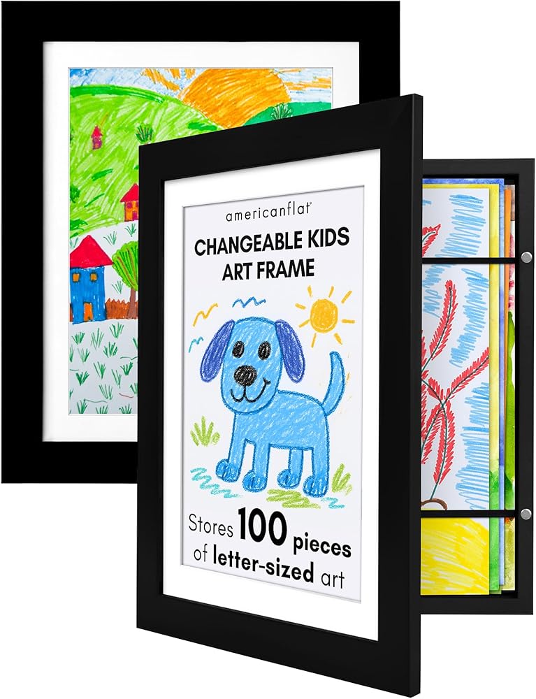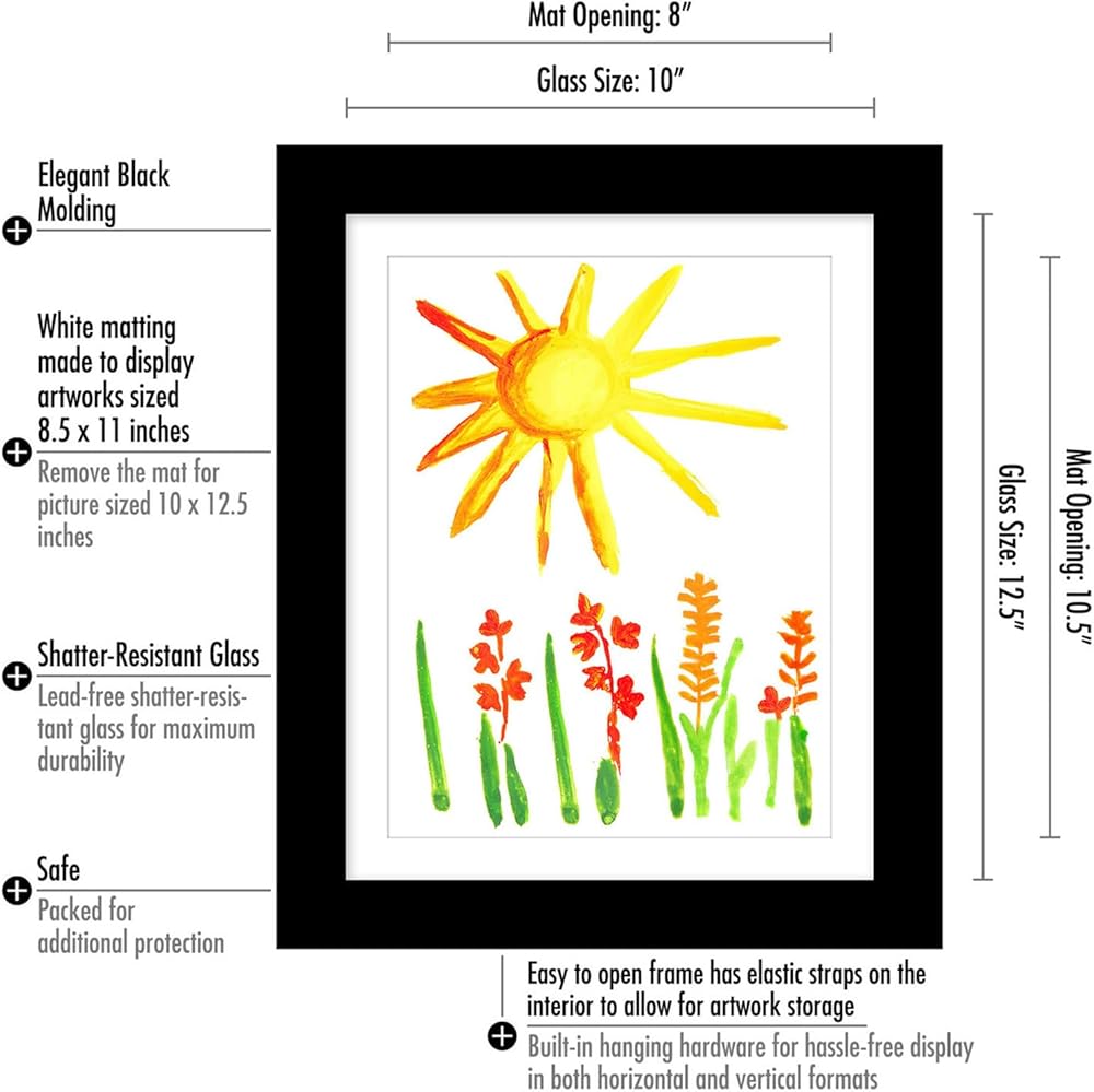 Art Display for Kids Artwork: Showcase your child's masterpieces with this frames for kids artwork. Designed to hold 8.5x11 photos or art with the mat, or 10x12.5 without the mat, this front-loading picture frame allows for quick and easy changes.