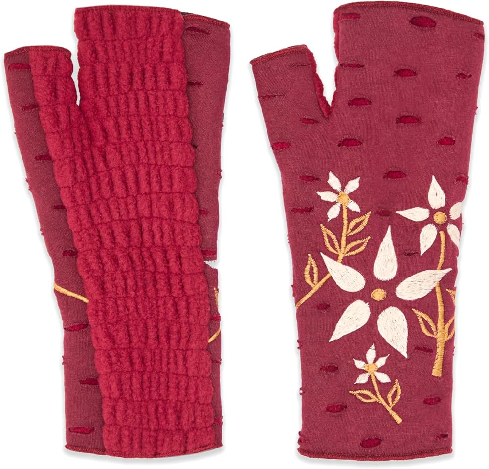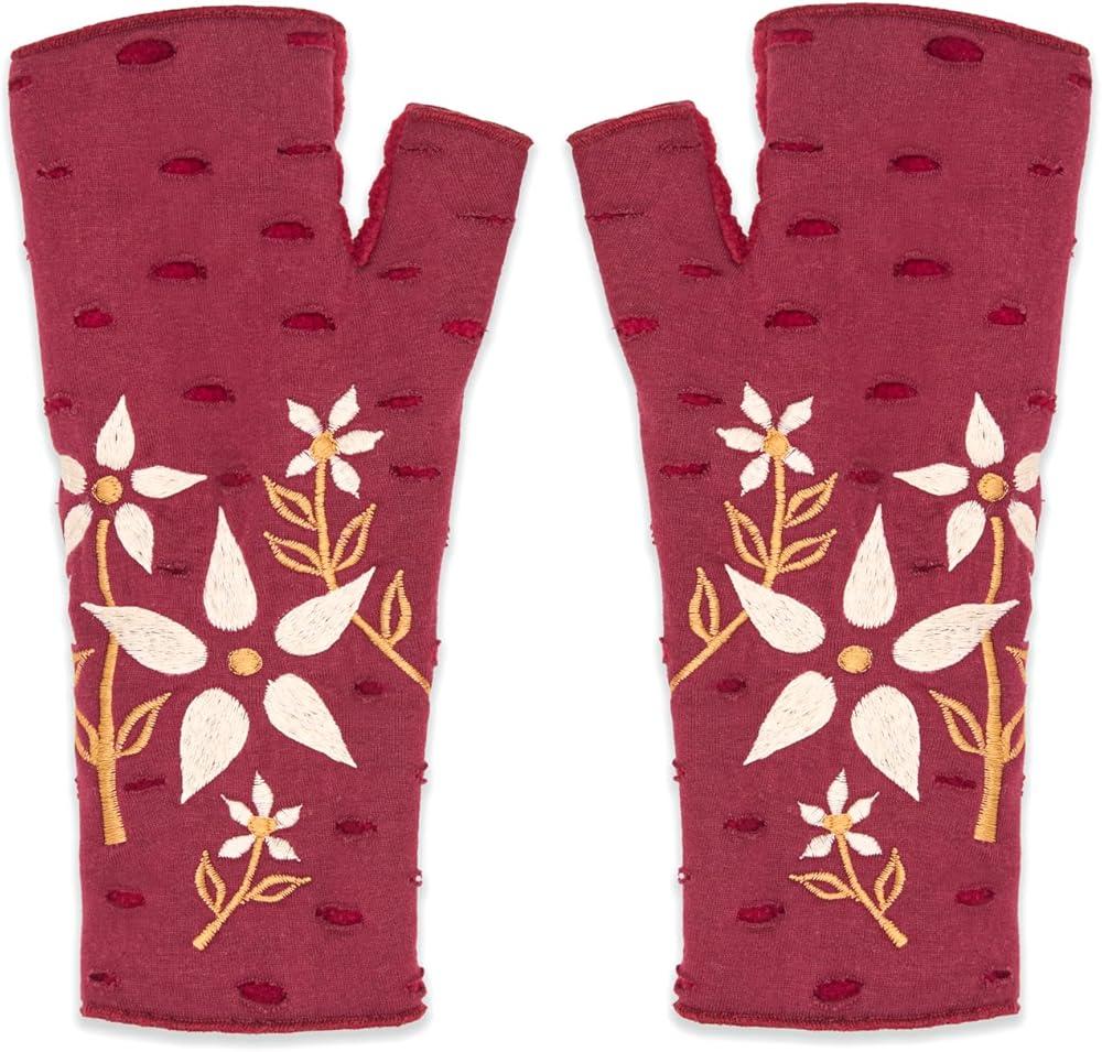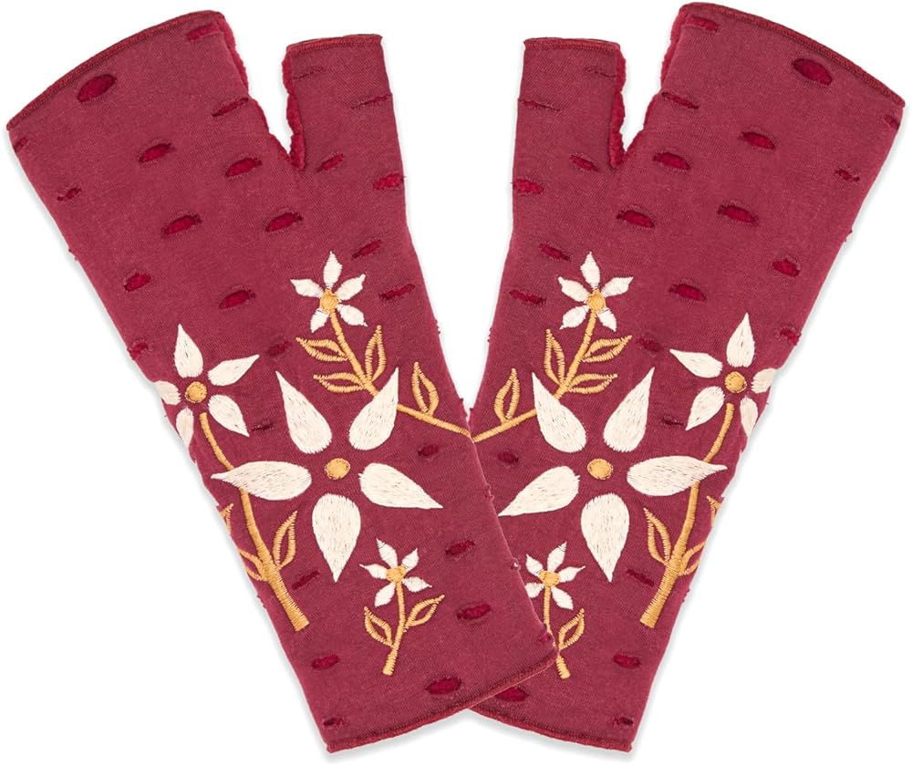 Our signature fingerless gloves are embroidered by artisans in Nepal. Perfect for keeping your hands warm and your fingers free.