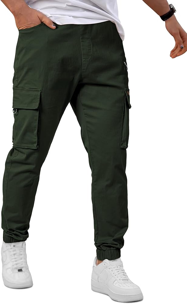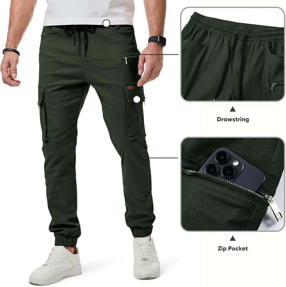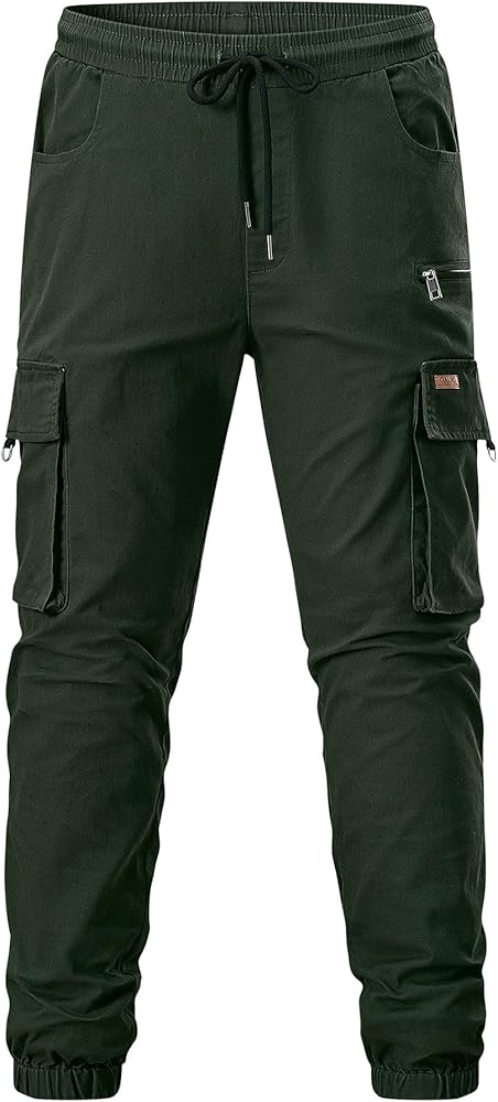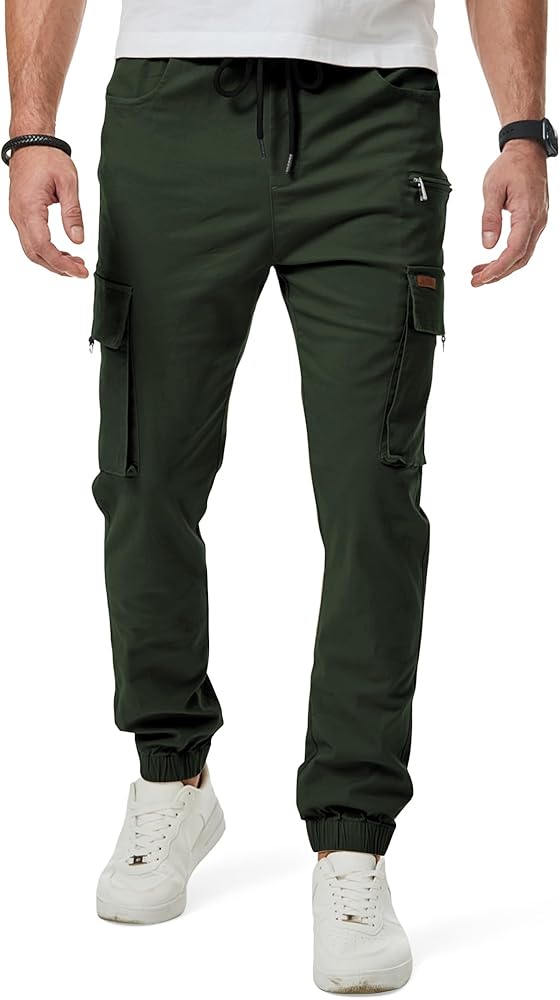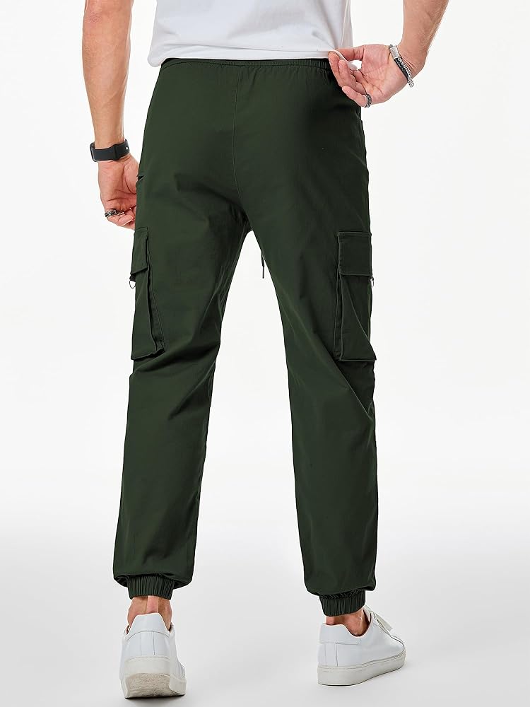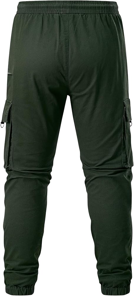 بنطال JMIERR رجالي كارجو برباط وخصر مطاطي من نسيج قطني طويل مع جيوب بسحاب