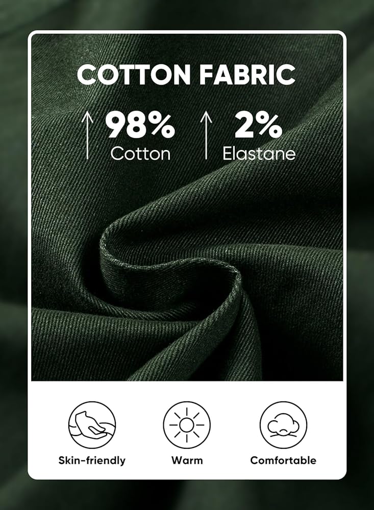 • Material and Functionality: Crafted from 98% Cotton and 2% Elastane, these pants offer excellent elasticity and durability. They ensure comfort and ease of movement, making them ideal for everyday wear.