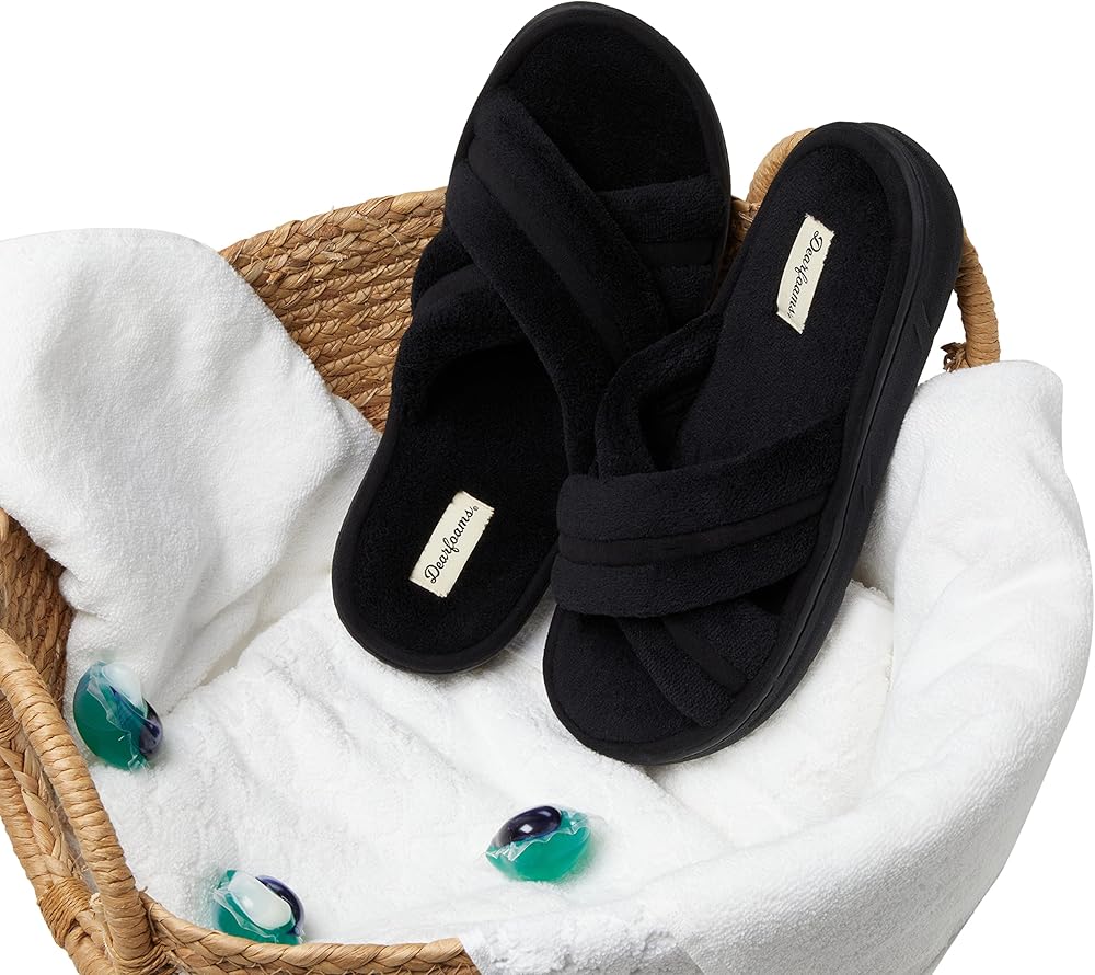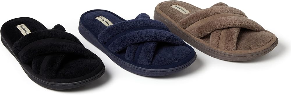 Around the house, in the backyard, and beyond, you can't go wrong with these versatile, do-it-all slides! Memory foam insoles cradle your feet with every step, while the no-sweat, machine washable designs promise long-lasting freshness. Constructed with quality materials, Dearfoams men's slippers offer unbeatable comfort and timeless style!These indoor/outdoor slippers feature easy on/off designs alongside supersoft memory foam insoles. They're the perfect choice for walking your dog around the block, grabbing the mail, taking out the trash, and more! Thanks to our innovative temperature-regulating DF Adapt designs, our men's slippers are extra-breathable to help cut down on odor. Whether you're looking for clog slippers, moccasin slippers, boot slippers, or closed back slippers, our men's slippers are an extra-cozy, extra-smart pick! And when it's time for a quick refresh, machine washable designs make keeping clean a breeze! Simply drop your slippers in the washer, set your machine toa gentle, cold cycle, and air dry; you'll be back to relaxing in no time at all.