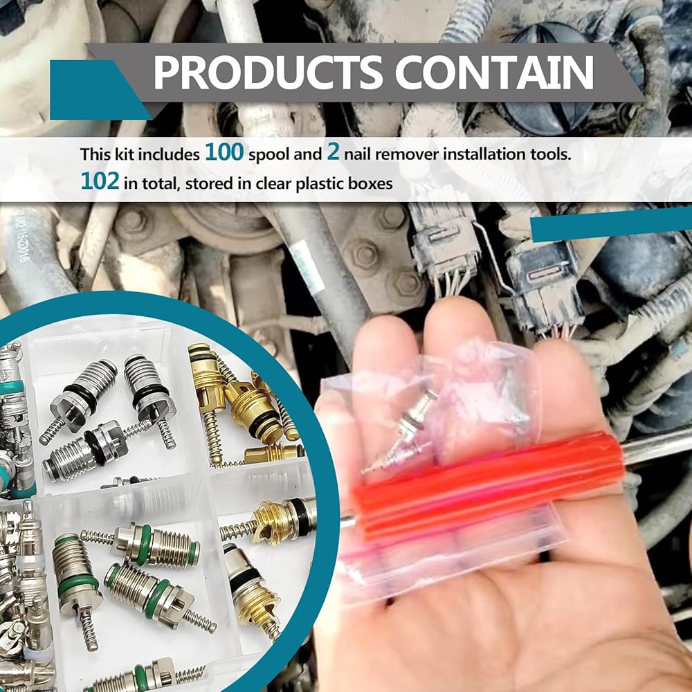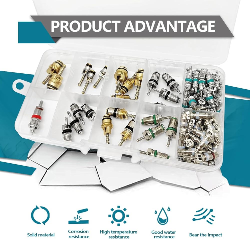 PACKAGE CONTENT: In this kit, include 100 value core and 2 remover tool. 102pcs stored in a transparent plastic box for storaging, selecting and using.