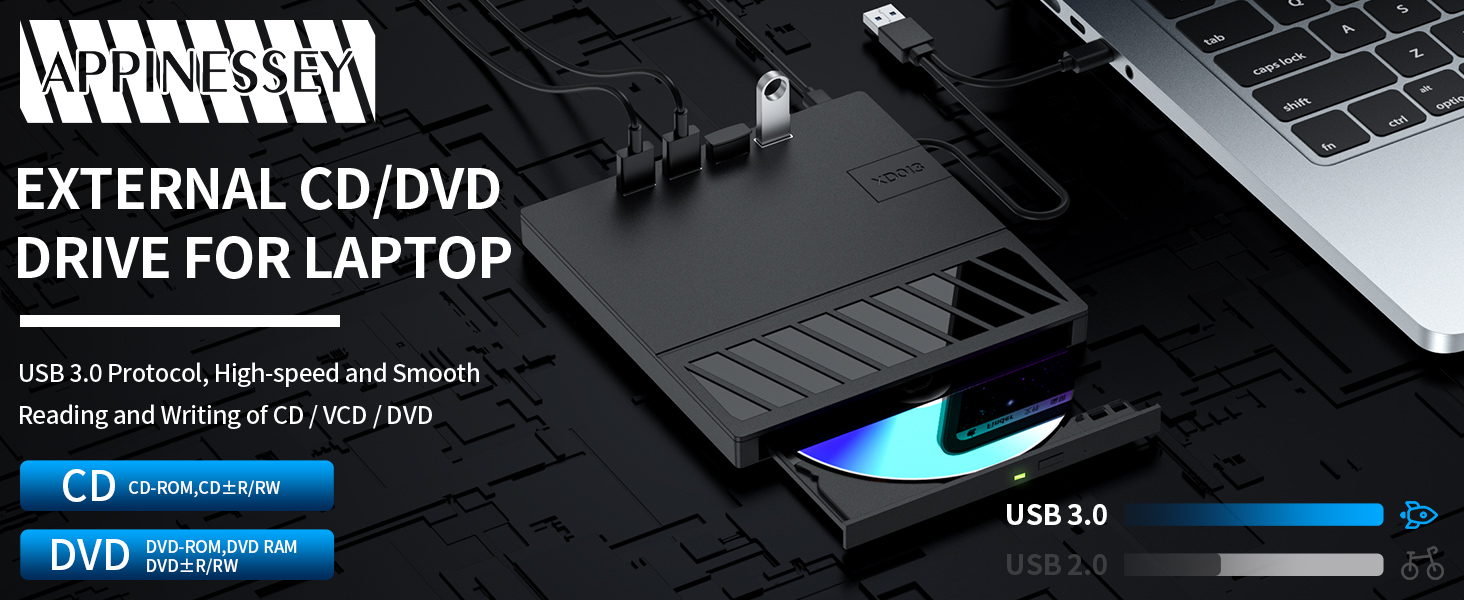 💻【نقل بيانات USB 3.0 عالي السرعة】 يتميز محرك أقراص CD/DVD الخارجي الخاص بنا بضوضاء منخفضة وتقنية مقاومة للصدمات، مع نقل بيانات USB 3.0 عالي السرعة، يمكنك توقع تجربة سلسة وسريعة عند تشغيل الملفات أو حرقها. (سرعة قراءة/كتابة DVD 8x، سرعة قراءة القرص المضغوط 24x)