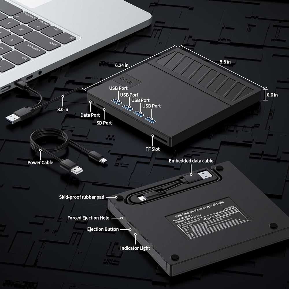 📀[محرك أقراص ضوئي 7 في 1] لا يتميز محرك أقراص CD/DVD الخارجي الخاص بنا بقارئ فتحة بطاقة TF/SD فحسب، بل يمكن أيضًا أن يعمل كمحور USB خارجي للكمبيوتر المحمول مع 4 منافذ USB 3.0. إنه الرفيق المثالي لجهاز الكمبيوتر المحمول أو سطح المكتب الخاص بك، ما عليك سوى توصيله بمنفذ USB واستخدامه مباشرة. (ملاحظة: لا يمكن قراءة TF وSD في وقت واحد)