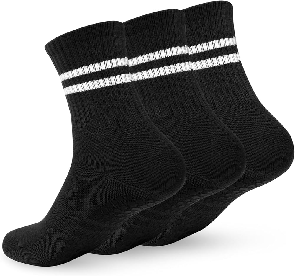3 أزواج من جوارب البيلاتس مع مقابض للنساء، جوارب يوجا غير قابلة للانزلاق، جوارب بقبضة بار نقية لليوجا، الباليه، الرقص، تمرين حافي القدمين، صالة الألعاب الرياضية، المستشفى، المنزل (أسود)