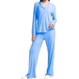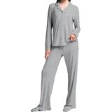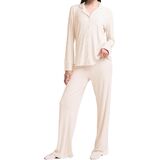 بيجامة بتصميم كلاسيكي مع ياقة ريفير مصممة بشكل مريح، وياقة ريفير بلمسة نهائية من الأنابيب، وأزرار سفلية مع جيوب على الصدر.