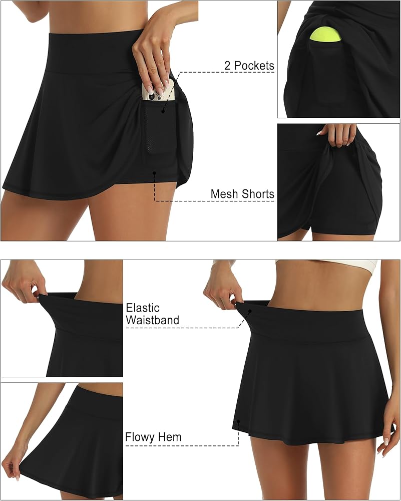 حاشية صغيرة ذات طيات واسعة: تم تصميم التنورات الرياضية بحاشية مطوية جذابة، تنورة واسعة تضيف مظهرًا أنيقًا وجذابًا، مما يجعلك تبدين أكثر نشاطًا أثناء التمرين. يناسب جميع أنواع الجسم تقريبًا، ويسهل تنسيقه مع الملابس العصرية
