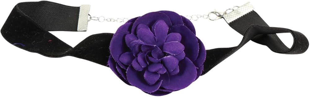 Elegant Choker: Accentuate your look with the chic black choker featuring an eye-catching purple flower.