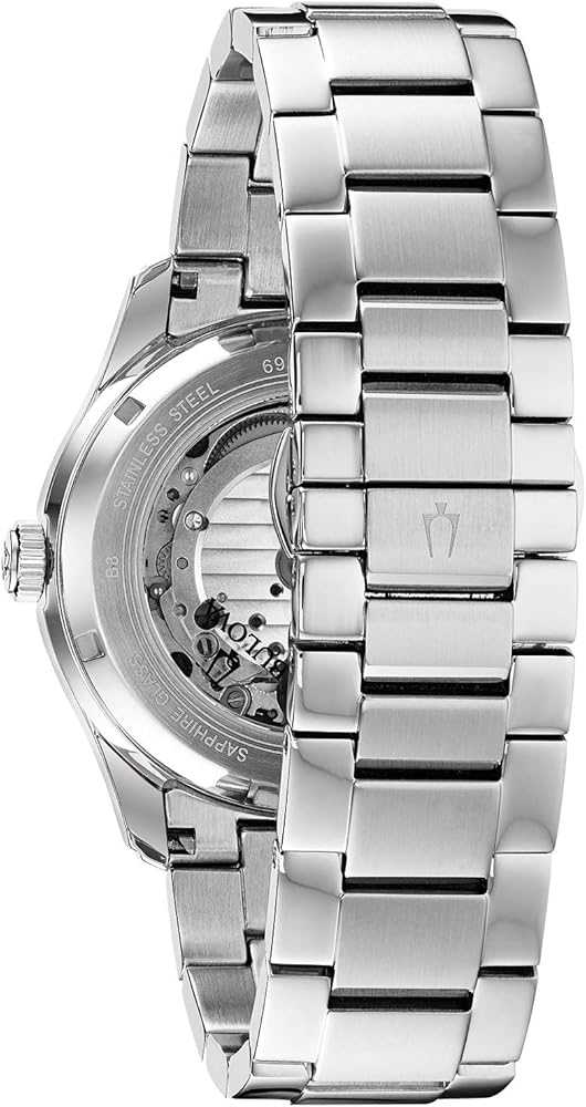 From the Bulova Men's Classic Collection. heartbeat movement with 60 hours of reserve power, domed sapphire crystal with anti-reflective coating, stainless steel bracelet with deployant clasp with push buttons