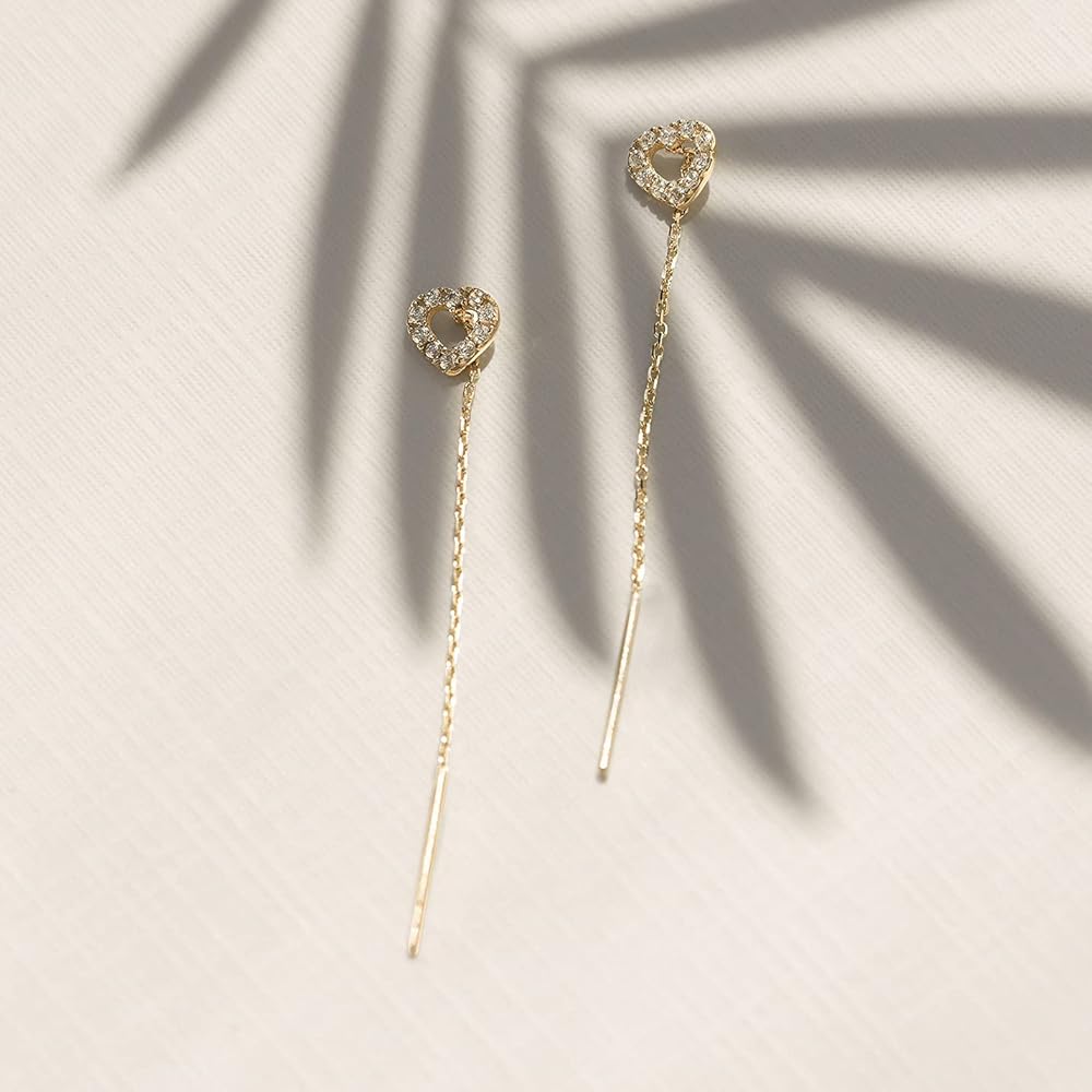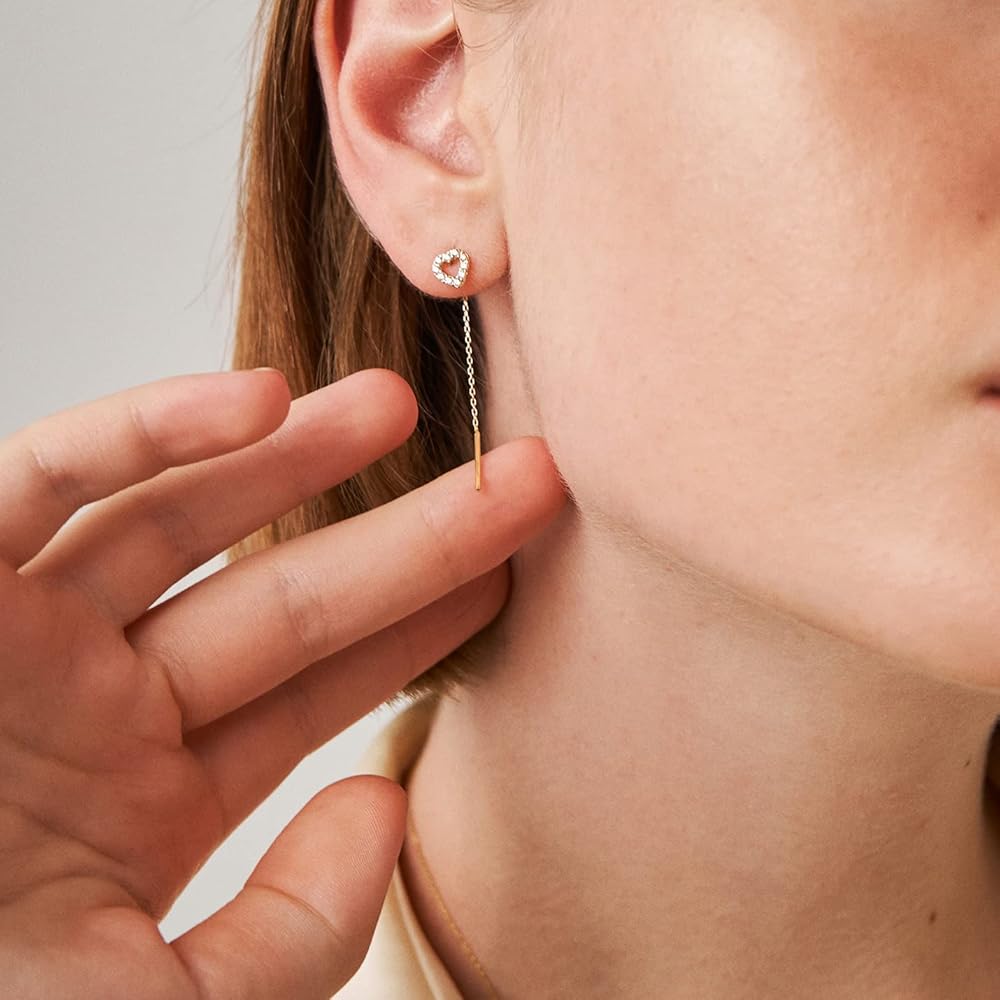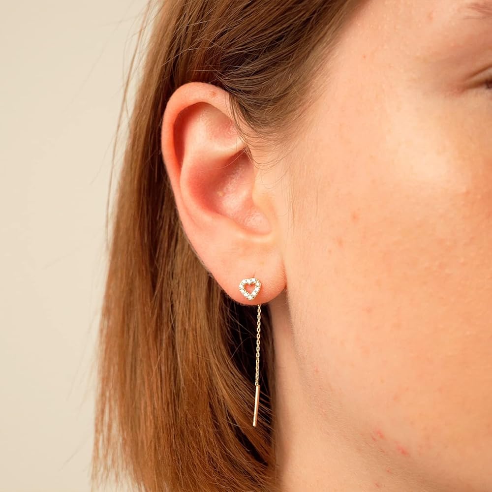 أقراط جيلين من الذهب الصلب عيار 14 قيراط على شكل قلب للنساء