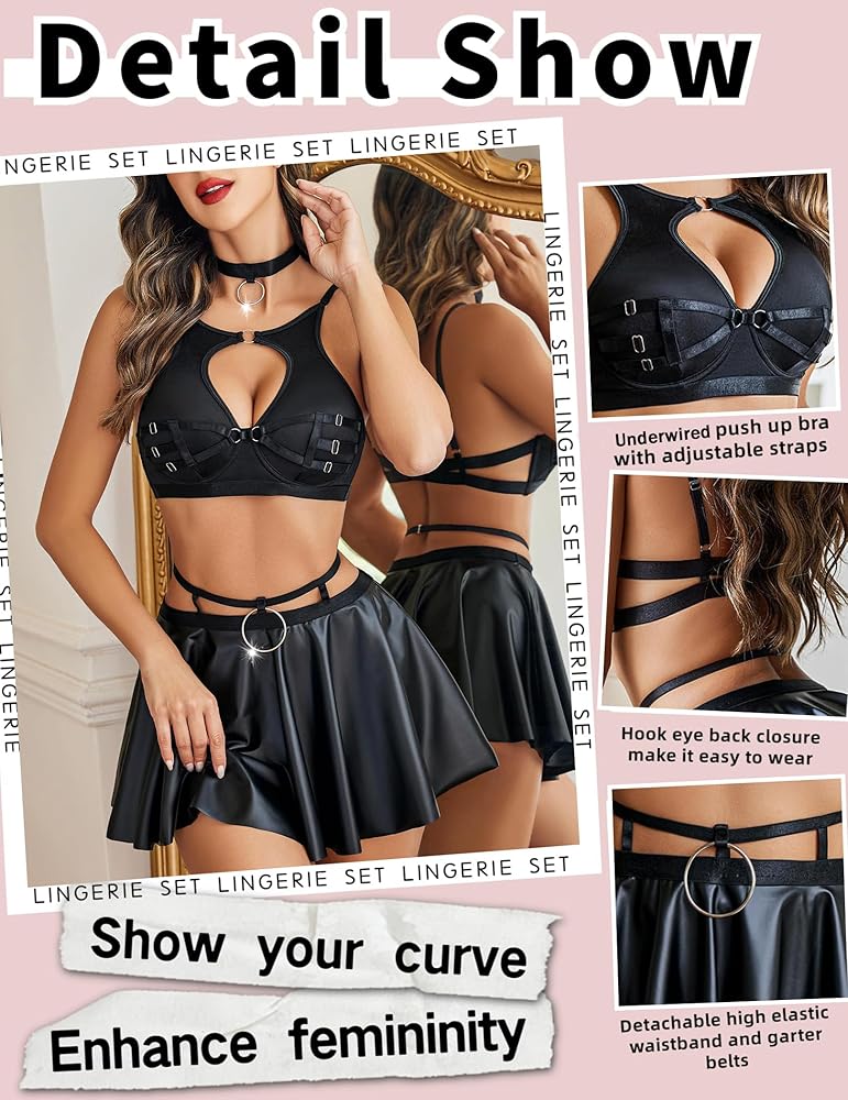 النمط: مجموعة الملابس الداخلية ضمادة الملابس الداخلية المكونة من 5 قطع تأتي مع لباس داخلي متطابق على شكل حرف g وحزام فريد وأحزمة رباط مع سلاسل، مما يعزز الأنوثة بشكل مثالي ويظهر منحنياتك، لتعزيز الأنوثة وتحديد خطوط الثدي المثيرة، مما يجعلك أكثر سحرًا. الجزء السفلي المرن يحتضن الثديين بشكل مثالي. كن مستعدًا لبعض المرح. يجعلك أكثر سحرا. لا يوجد انسكاب أو زلات.