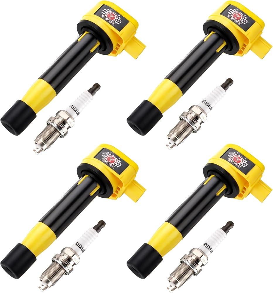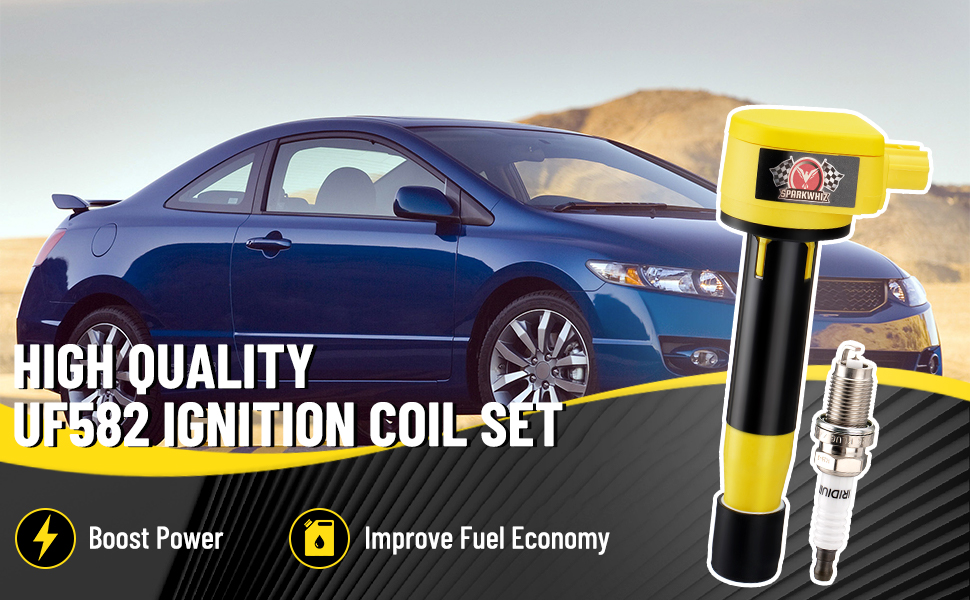 حزم ملف الإشعال UF582 مع شمعات إشعال إيريديوم، متوافقة مع Honda Civic 1.8L L4 2006-2011، بديل لـ C1580، IC662، 5C1637، GN10324