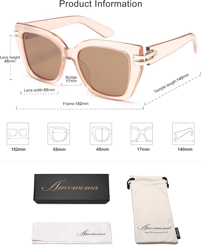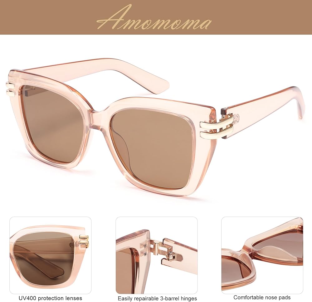 مواد فاخرة من أجل المتانة - هذه النظارات الشمسية الكبيرة الحجم من AMOMOMA مصنوعة من إطارات بلاستيكية خفيفة الوزن، ومفصلات معدنية قوية، وعدسات UV400، مما يضمن الراحة والمتانة للاستخدام طويل الأمد.