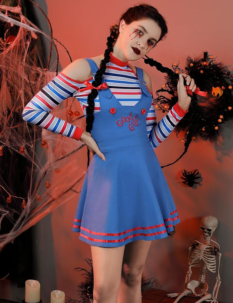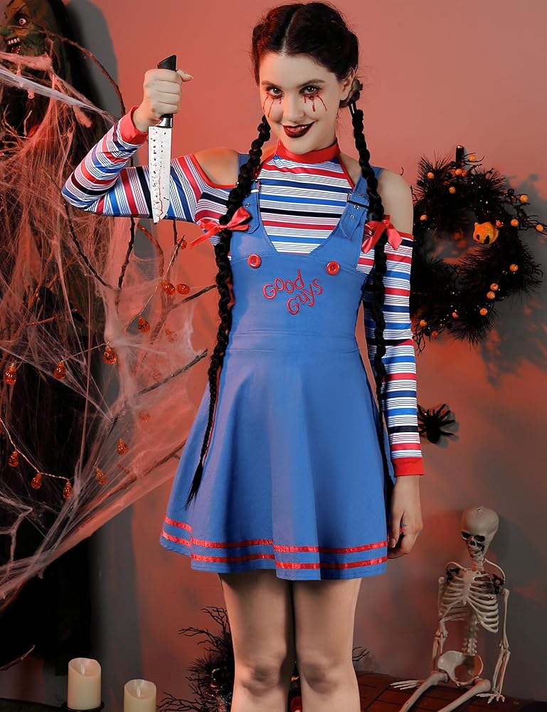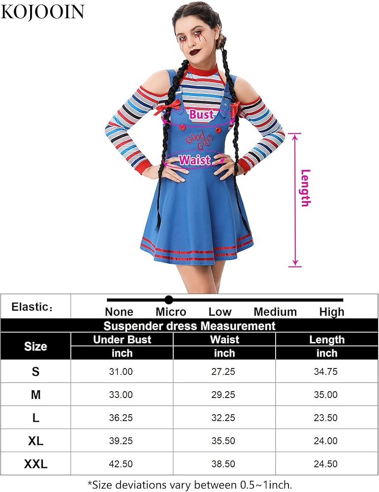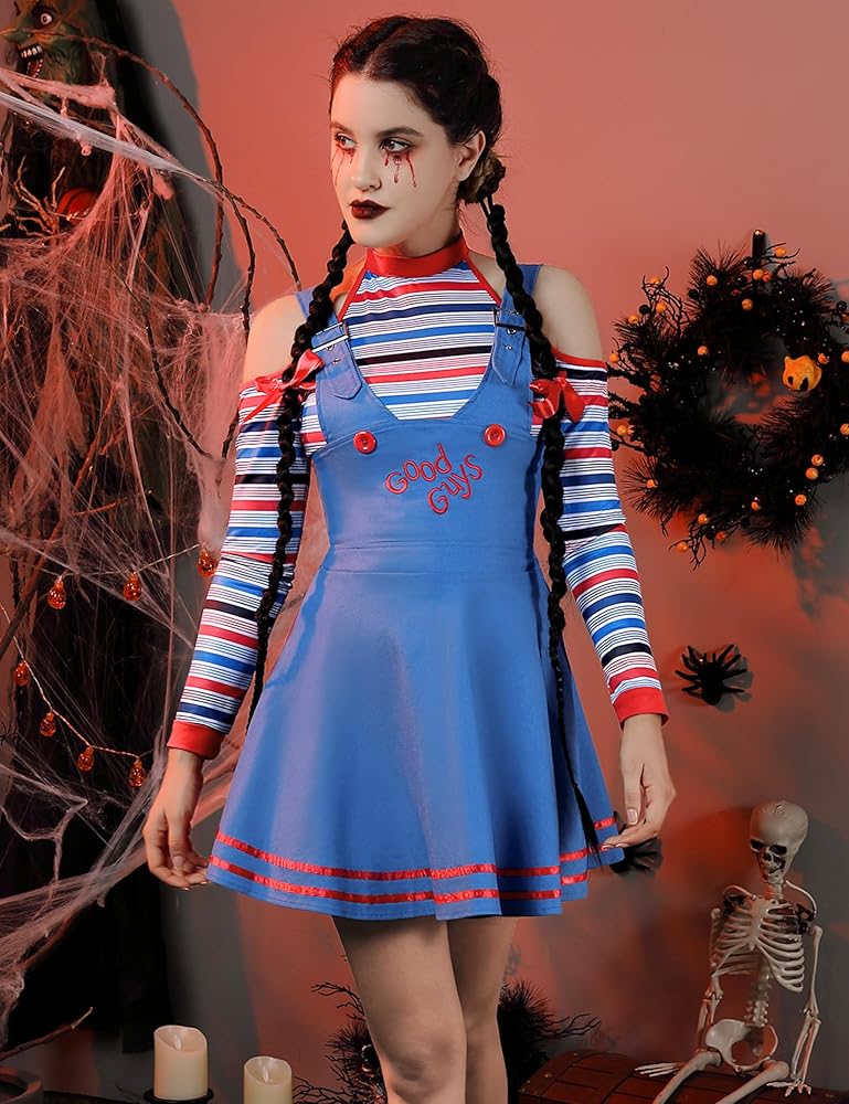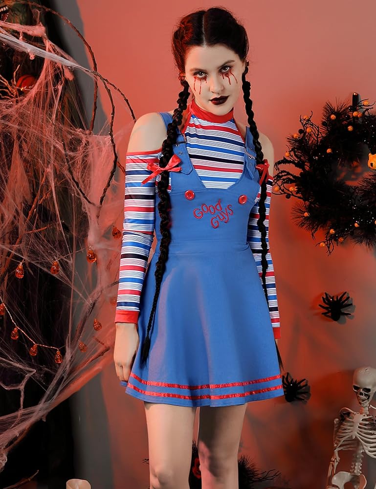 فستان KOJOOIN النسائي تشاكي الفاخر للبالغين من Good Guy مناسب للهالوين باللون الأزرق S