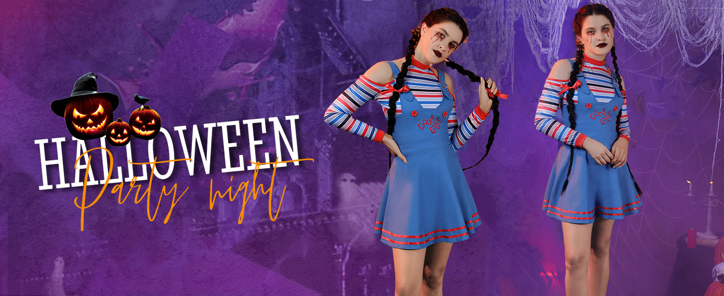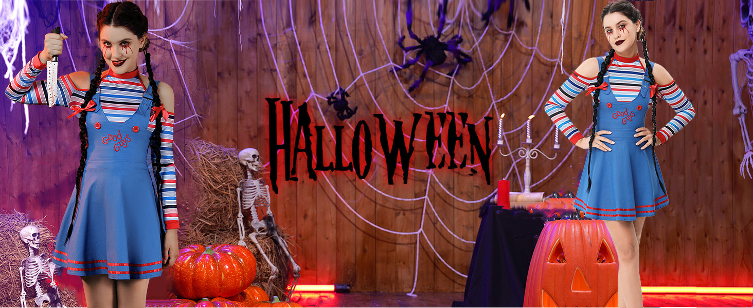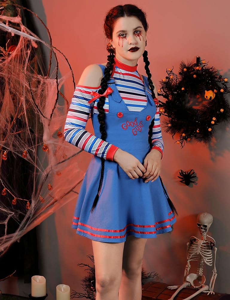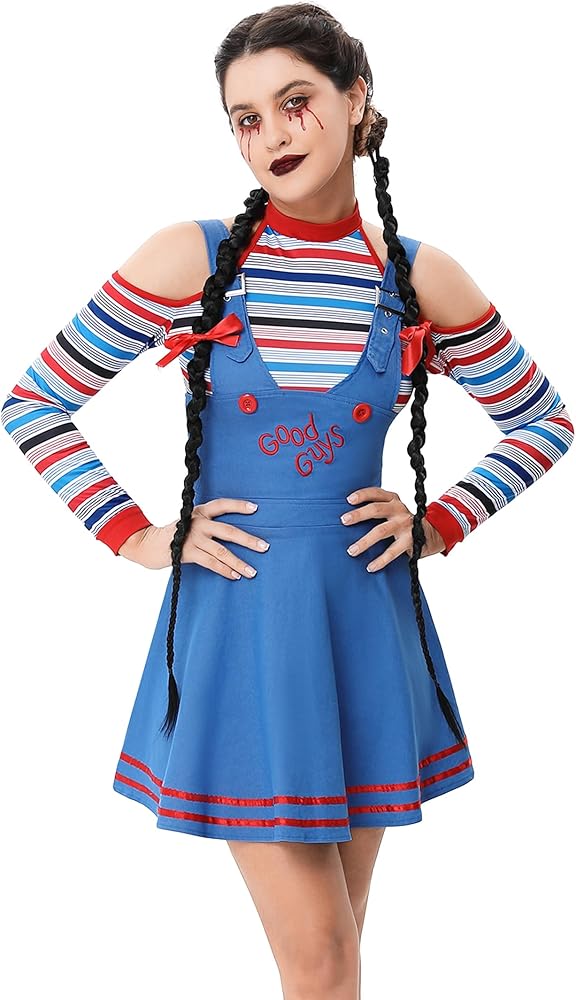 فستان KOJOOIN النسائي تشاكي الفاخر للبالغين من Good Guy مناسب للهالوين باللون الأزرق S
