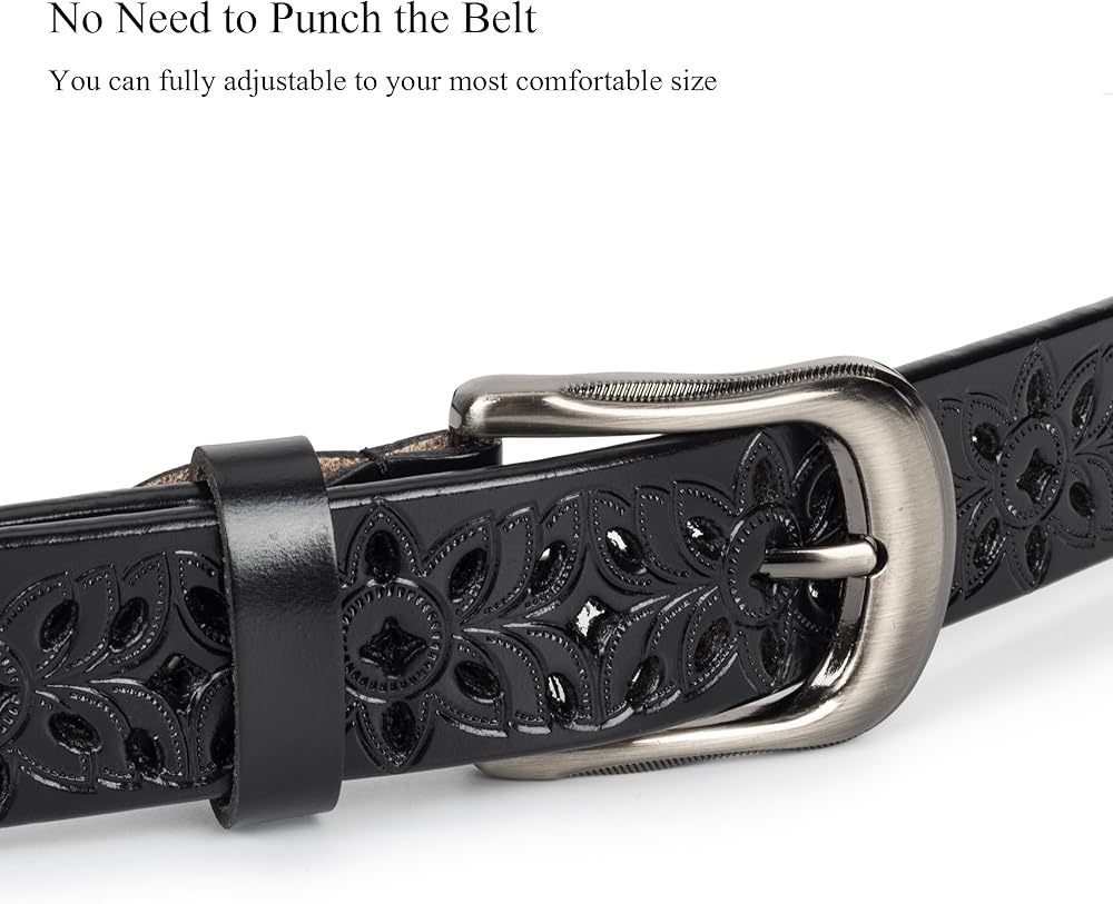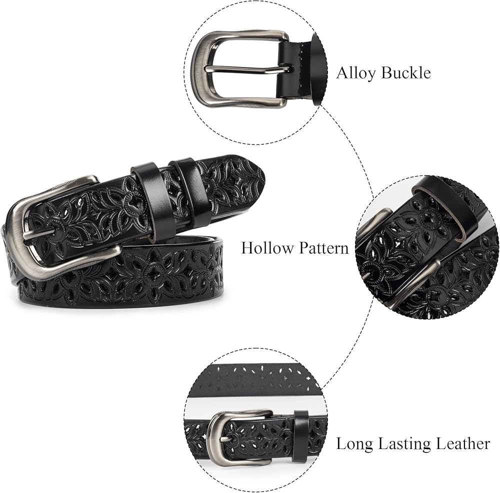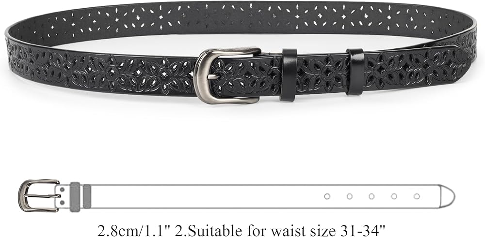 Hollow Flower Leather Belt: The Women Leather Belt is made of premium quality cowhide leather, soft, comfortable and long-lasting use.The exquisite polishing design make the surface of solid alloy pin buckle look very smooth and flawless
