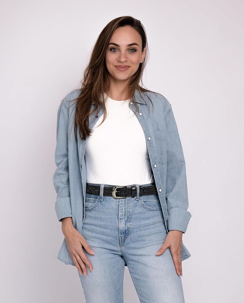 Hollow Leather Belts for Women, Soft Leather Womens Belts with Pin Buckle.