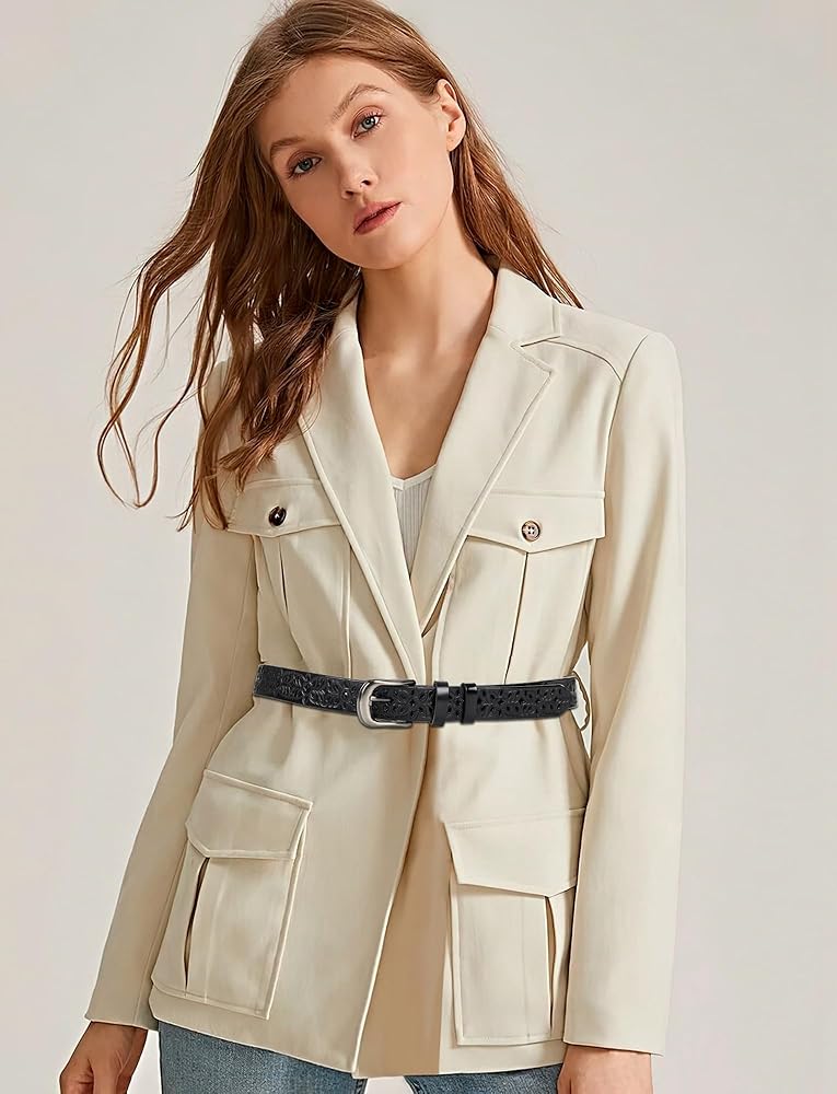 Unique Design: Hollow flower design, the flower cuts are very precise and have no residual flakes of leather, perfect casual belt for daily wear and formal occasions