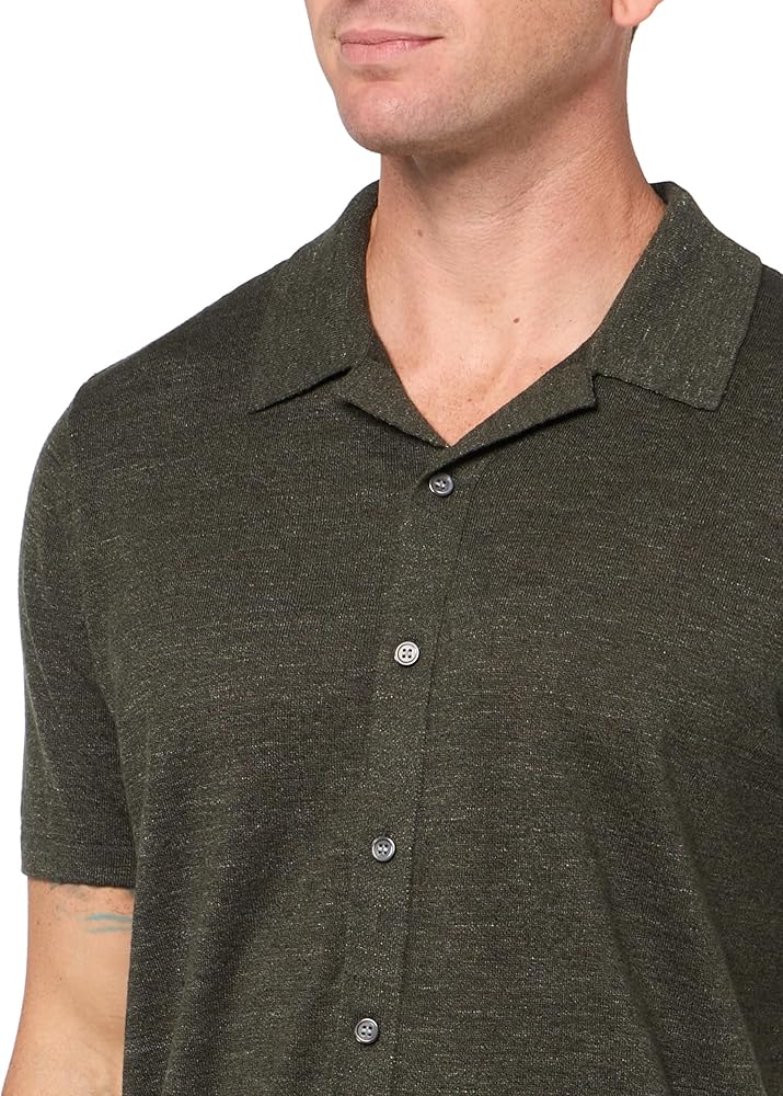 This short sleeve shirt has a button front closure and is made of a lightweight pacific linen.