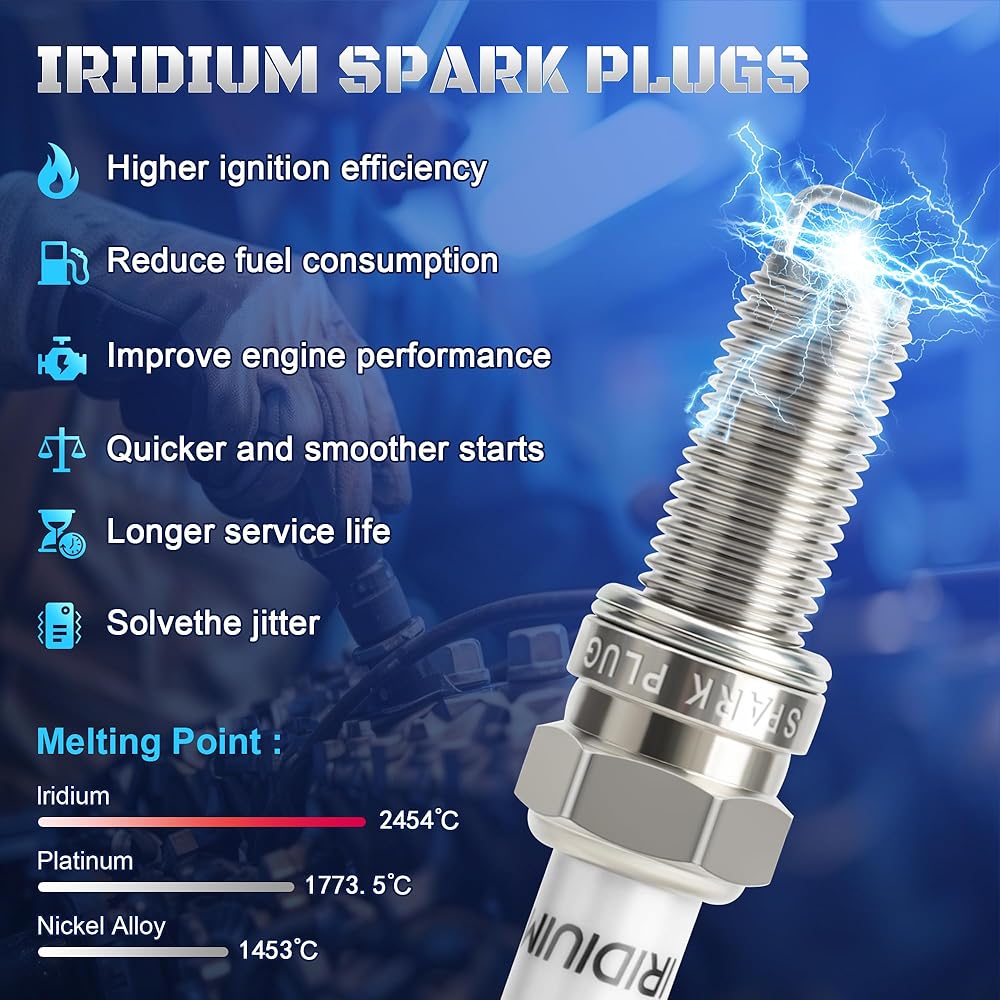 [مادة ممتازة]: متانة القطب الكهربائي المركزي للأسلاك الدقيقة من إيريديوم أصعب بست مرات من البلاتين. تتميز سبيكة الإيريديوم بنقطة انصهار عالية للغاية، مما يمنحها متانة عالية للحرارة والتآكل الكهربائي، وهي مثالية للمحركات عالية الأداء اليوم.