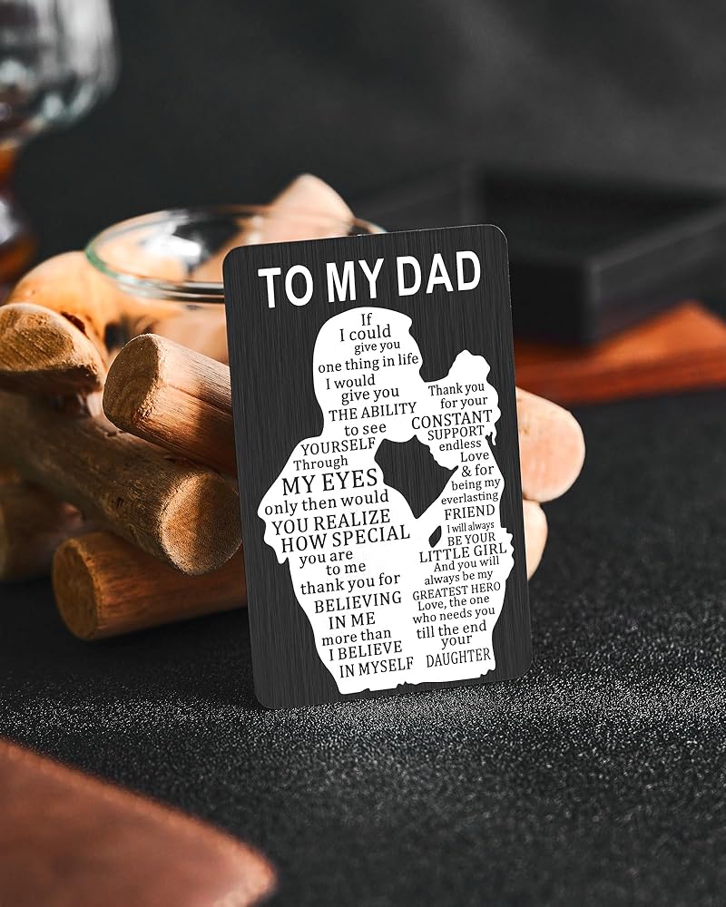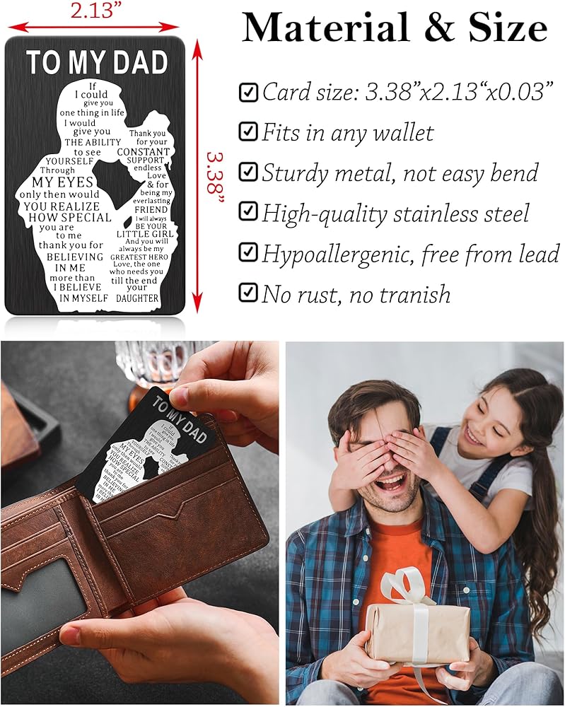 [هدايا الأب من الابنة] - البطاقة المعدنية المنقوشة الفريدة هي هدية ذات معنى للأب في عيد الأب، أو الكريسماس، أو عيد الميلاد، أو عيد الشكر، أو عيد الحب، أو عيد الفصح، أو أي مناسبة
