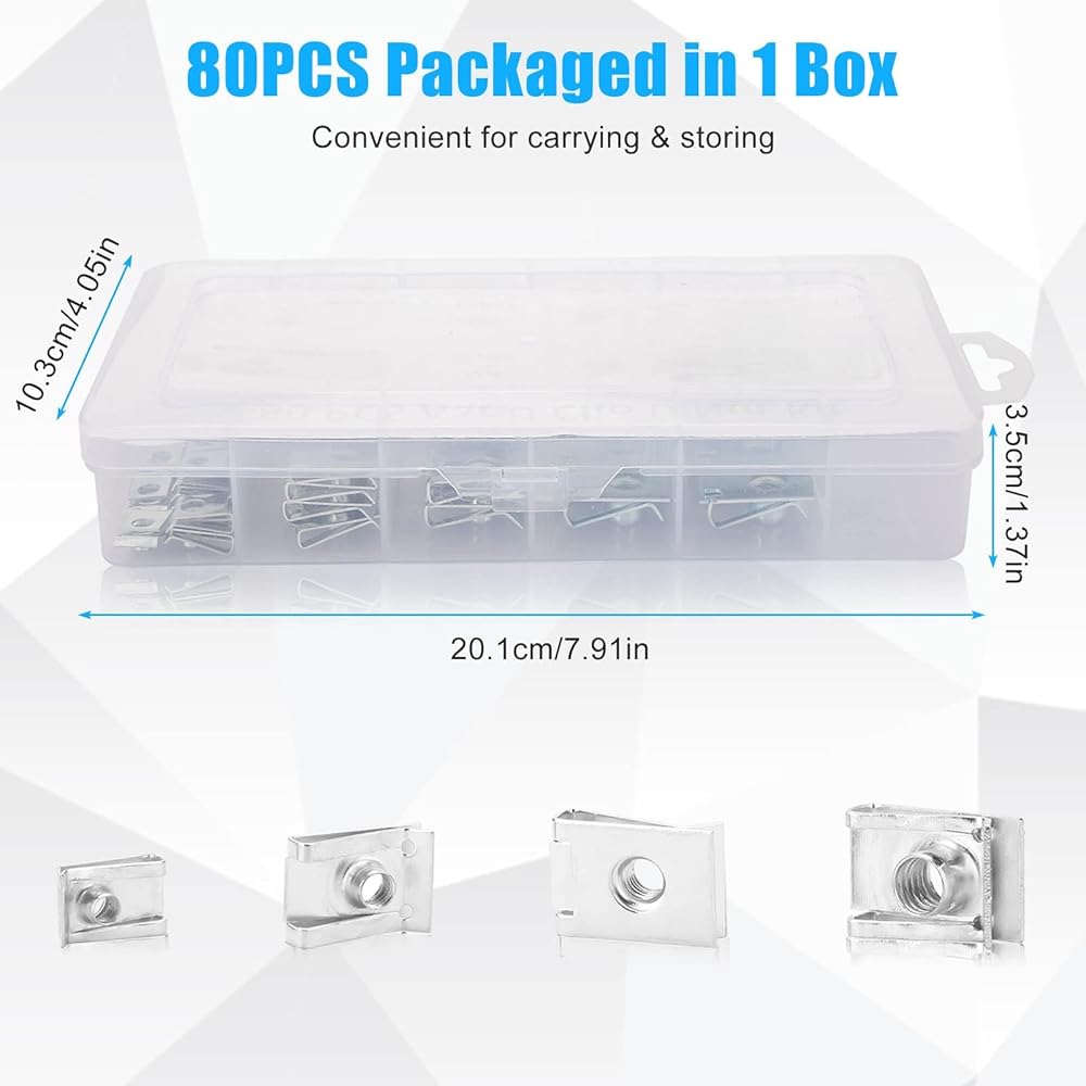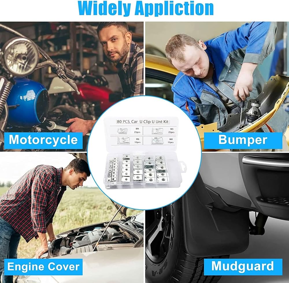 Linkstyle 80 قطعة من مشابك صواميل على شكل حرف U، مجموعة متنوعة من صواميل M4 M5 M6 M8 U، مشابك تثبيت على شكل حرف U للوحة باب لوحة القيادة الداخلية لمصد المحرك التلقائي
