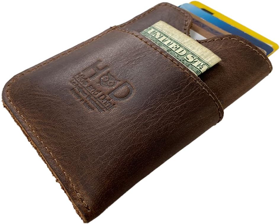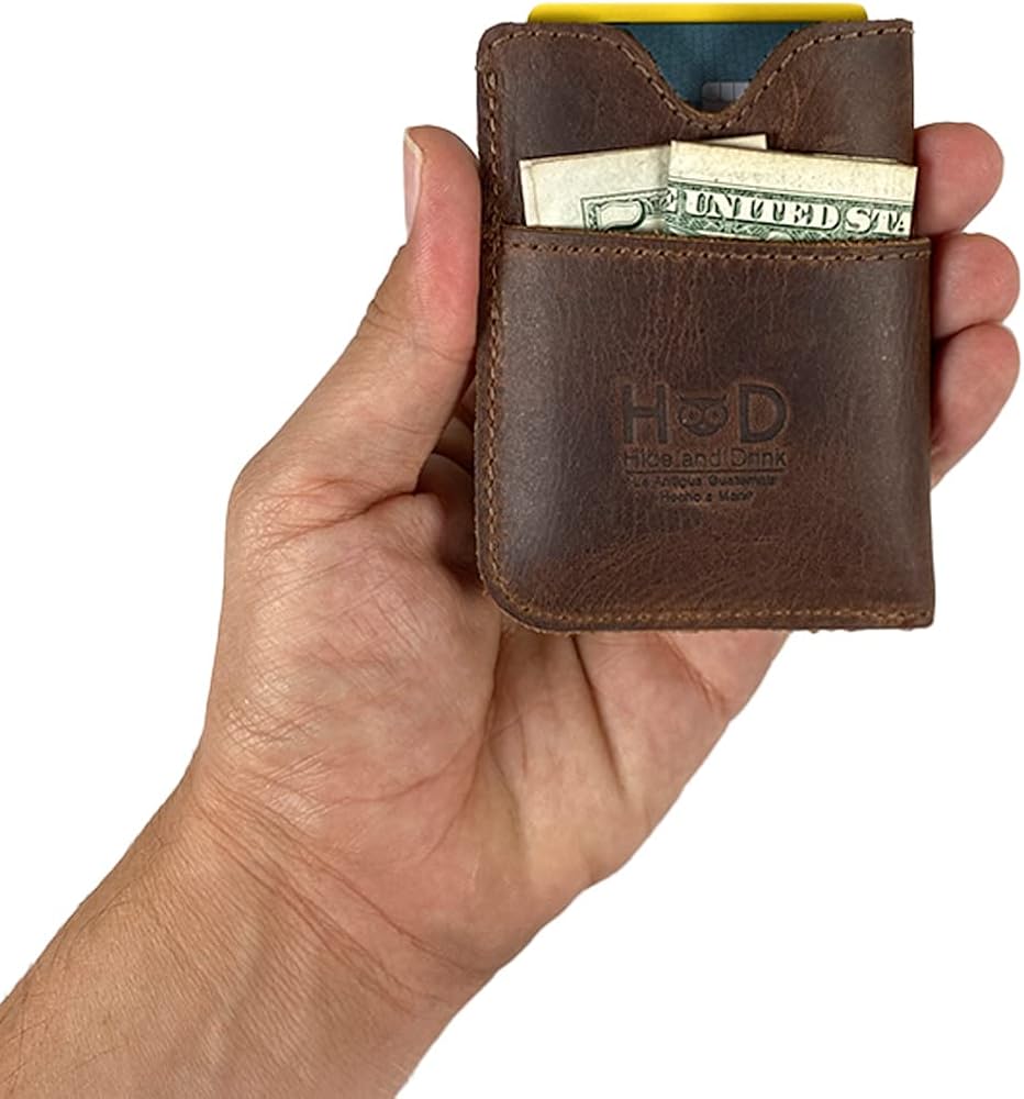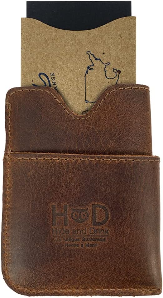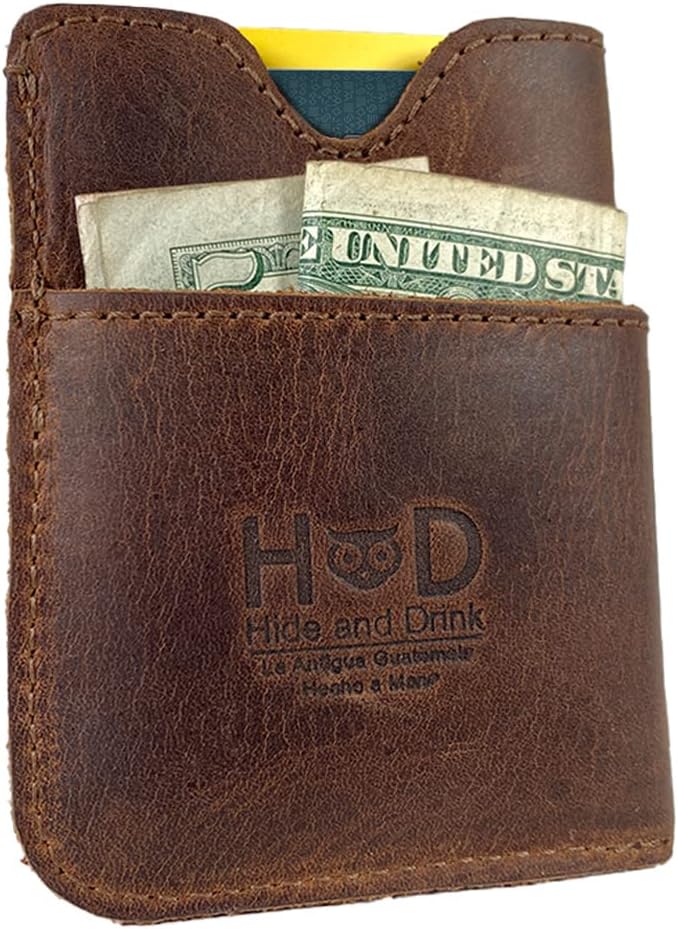 حامل بطاقات اختبئ واشرب، مصنوع يدويًا من الجلد المحبب بالكامل - بني بوربون