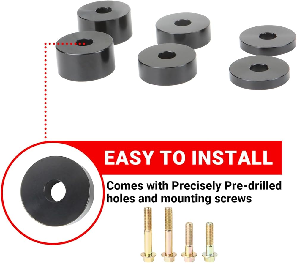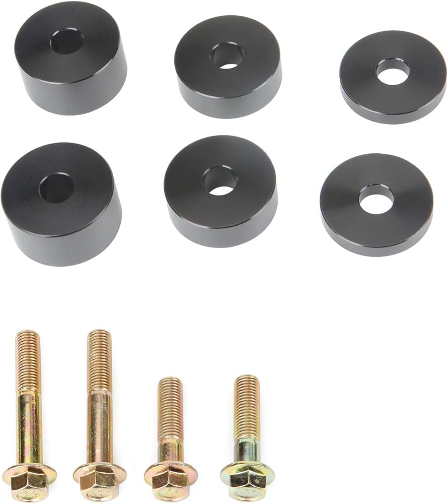 Includes : Two 0.25in Front Seat Spacer, Two 0.5in Front Seat Spacer, Two 0.75in Front Seat Spacer, Four Bolts. Please refer to the main image