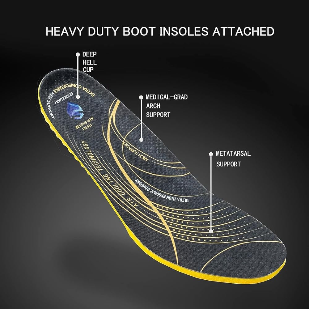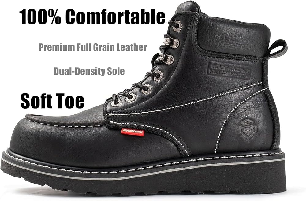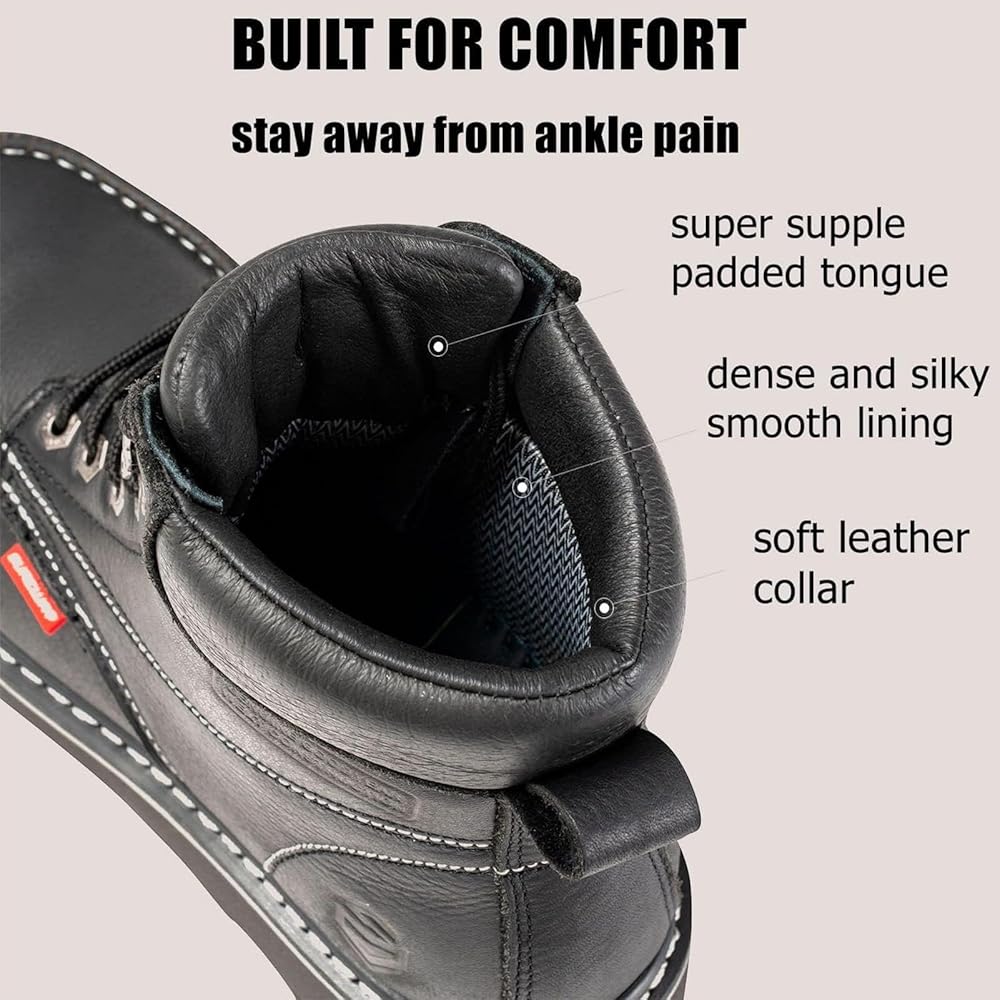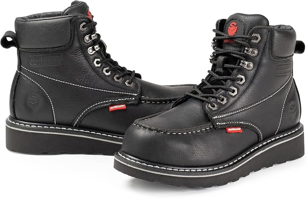 أحذية عمل جلدية محببة بالكامل سميكة للرجال: جزء علوي من الجلد المحبب بالكامل مع تقنية الزيت، مزيج مثالي من القوة والناعمة، يجعل أحذية العمل شديدة التحمل SW601M من SUREWAY مقاس 6 بوصات أكثر أحذية العمل راحة ومتانة يمكنك الاعتماد عليها. مقاس قياسي للحصول على أفضل ملاءمة. تأتي العبوة مع زوج من النعال الداخلية اللائقة لضبط الملاءمة وزيادة مستوى الراحة حتى لا تحتاج إلى النعال الداخلية الراقية.