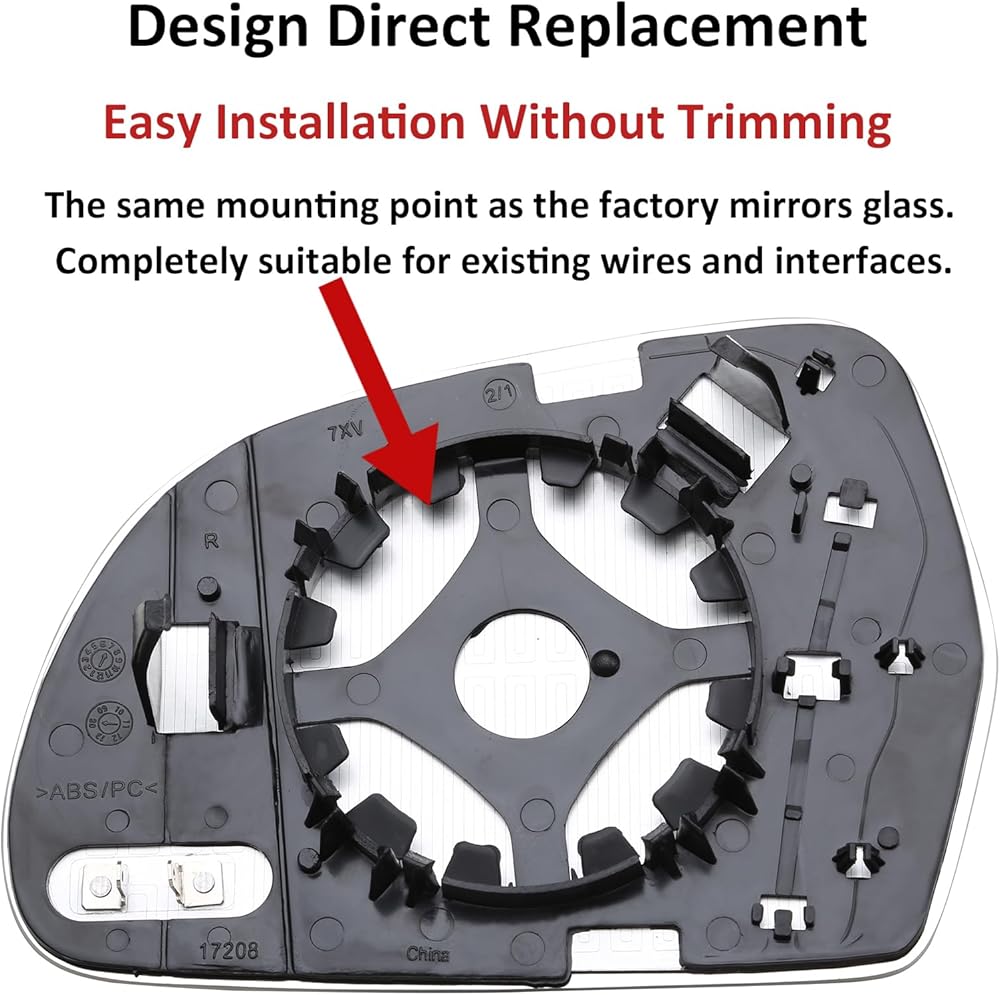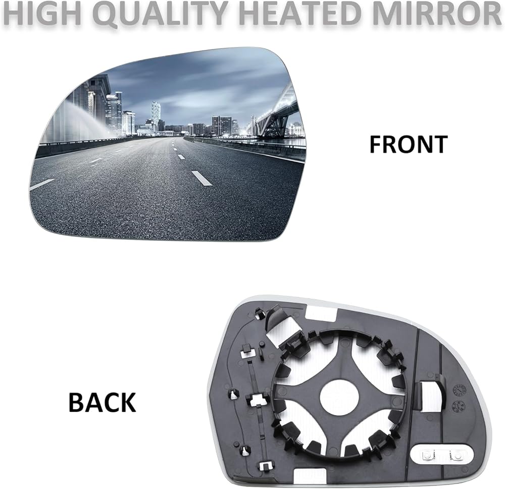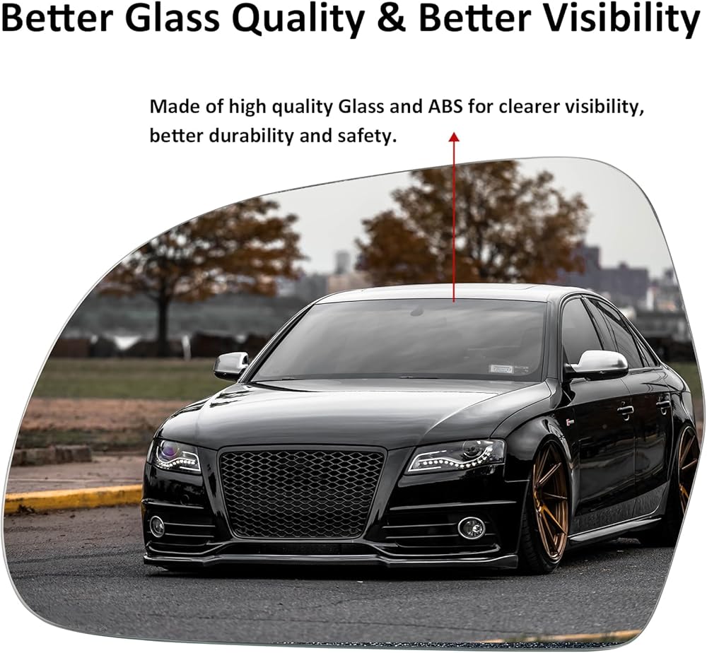 تصميم بديل مباشر وملاءمة بدون تشذيب: تم تصميم هذا الزجاج البديل للمرآة الجانبية للسائق باحترافية كبديل مباشر لسيارة Audi A3 S3 8P 2009-2010، Audi A4 S4 B8 2008-2009، Audi A4 Allroad/Quattro 2010-2016، Audi A5 S5 2008-2009، أودي A6 S6 C6 2009-2011، أودي A6 Allroad/Quattro 2008-2011، Audi A8 S8 2008-2010، Audi Q3 2012-2017 استبدال زجاج مرآة الرؤية الجانبية للسائق