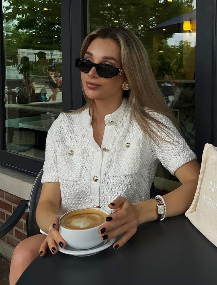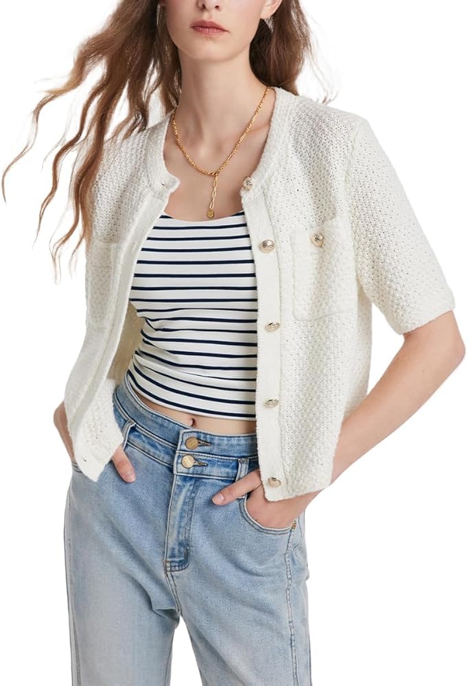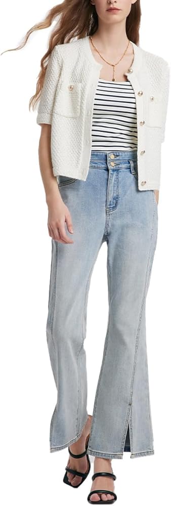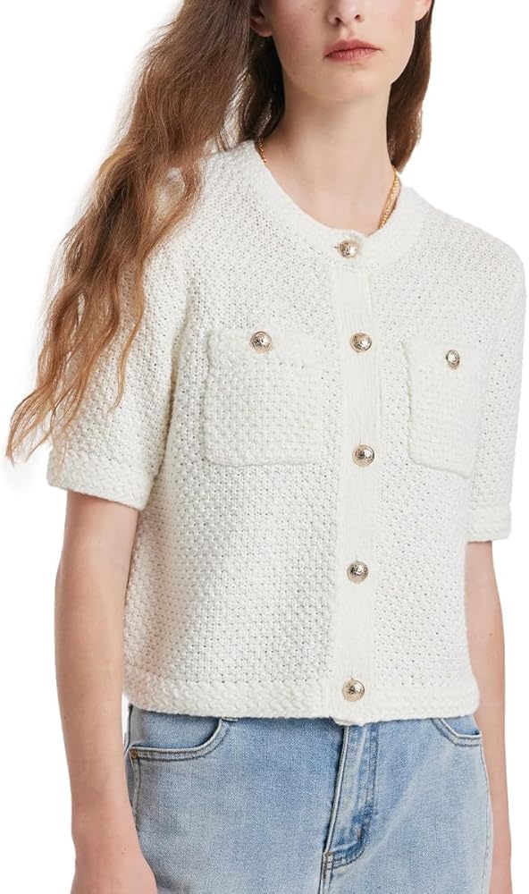 • المميزات - تم تصميم السترة المحبوكة ذات الأكمام القصيرة بنمط شائع، وهو كلاسيكي وخالد. مقاس هذه البلوزة فضفاض ومعتدل، وليس ضيقًا جدًا أو فضفاضًا جدًا، مما يجعل من السهل إظهار مزاج أنيق. وتضيف الأزرار المعدنية القديمة والجيوب المزخرفة لمسة من الرقي.