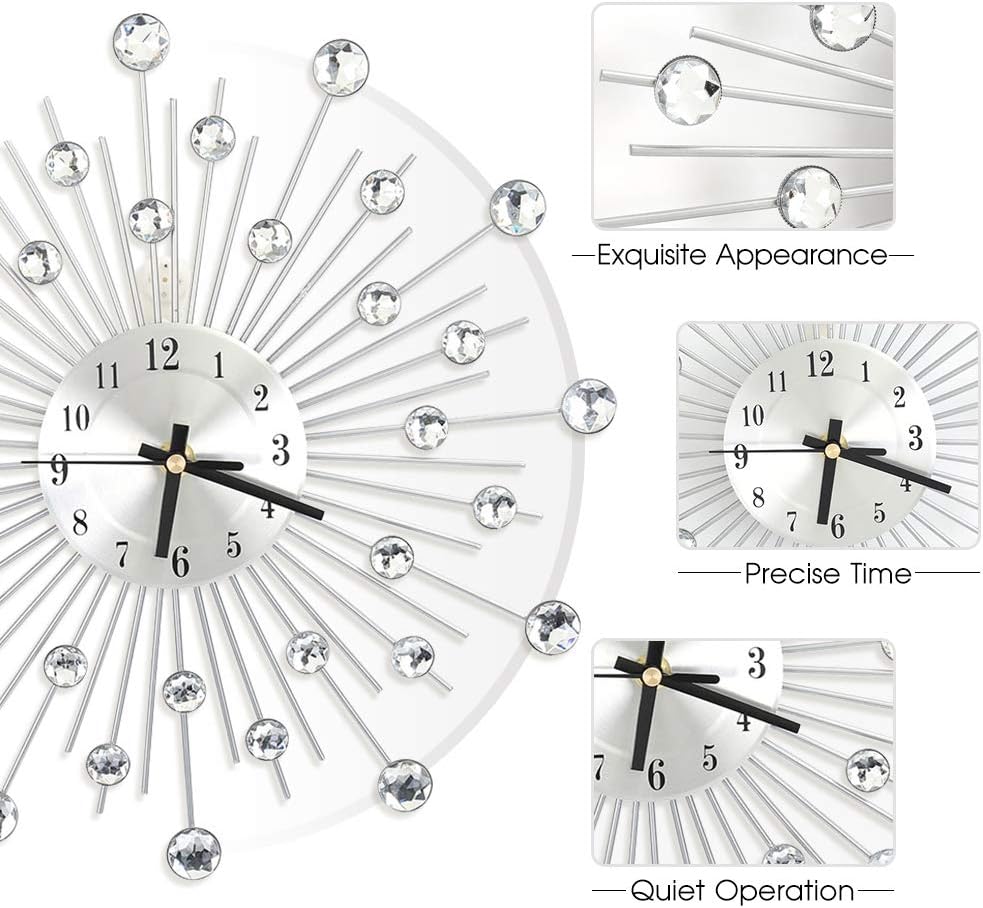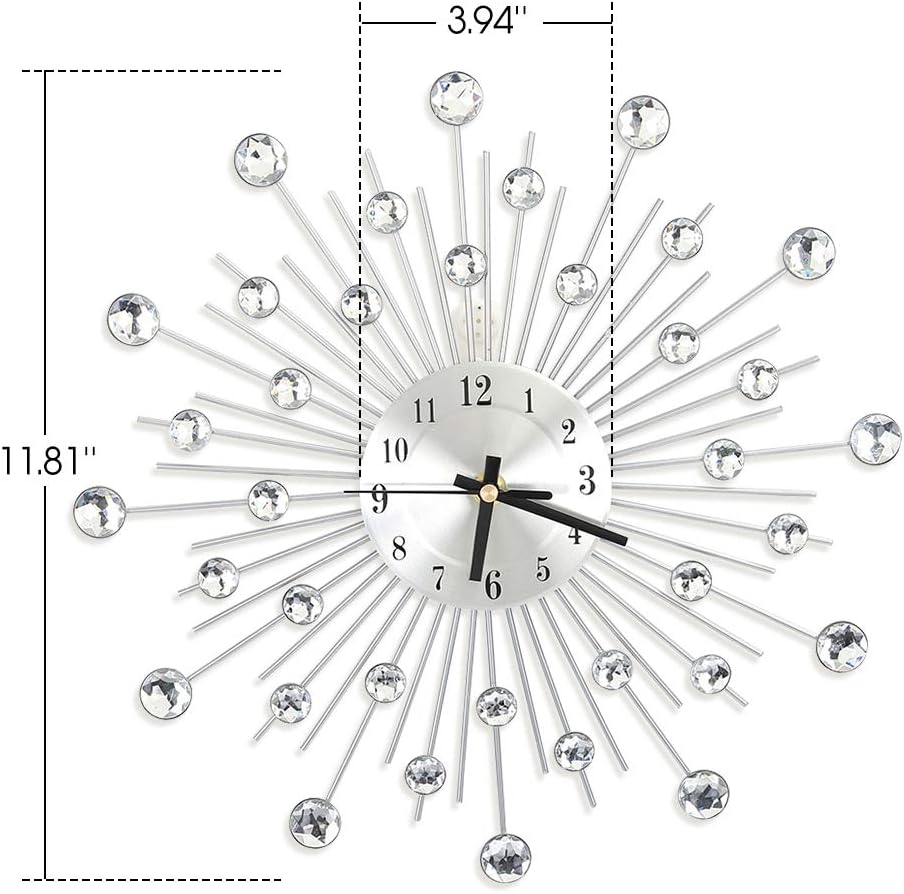 ساعة حائط كريستالية عصرية ثلاثية الأبعاد، فاخرة 12 بوصة غير موقوتة - ساعة حائط معدنية مرصعة لغرفة المعيشة، الفندق، ديكور غرفة النوم