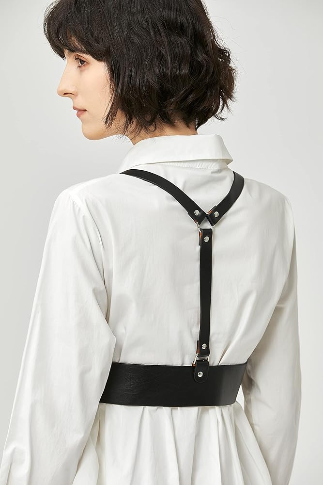 تصميم عصري: يأتي حزام الخصر الشرير هذا باللون الأسود الكلاسيكي، وشكل الظهر على شكل حرف Y وتصميم حزامين للكتف.
