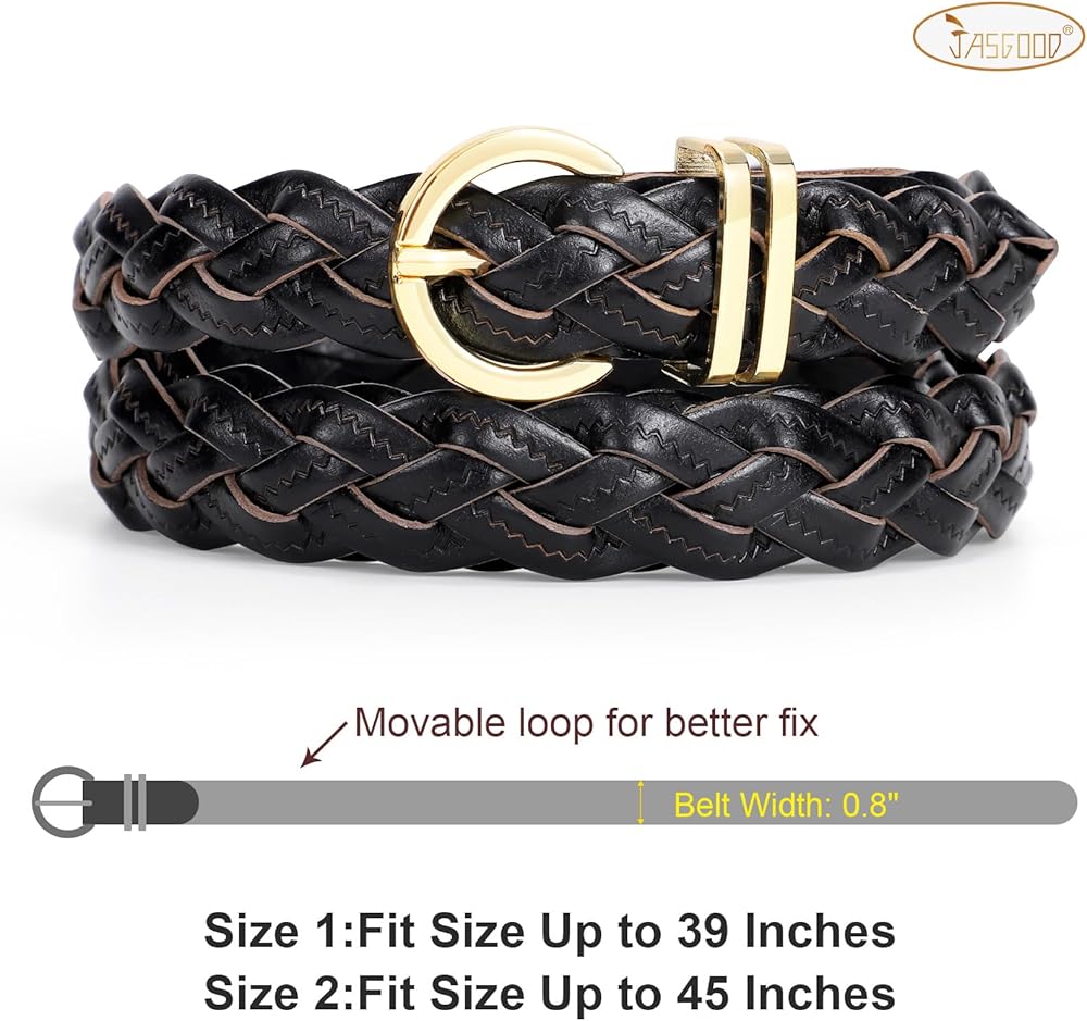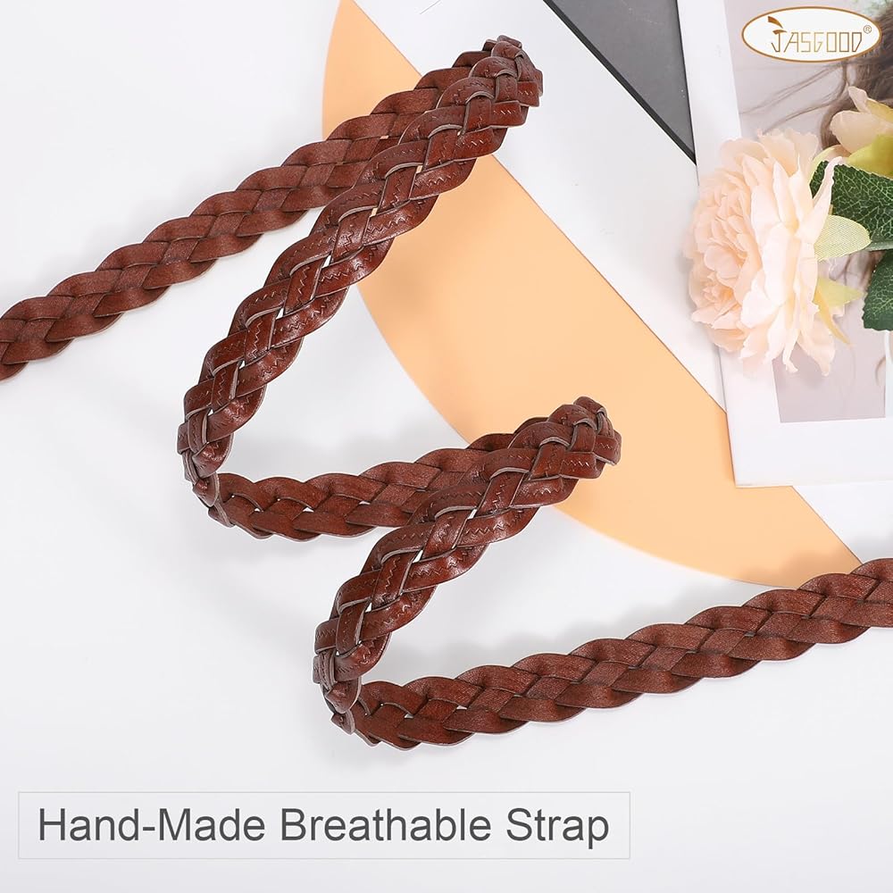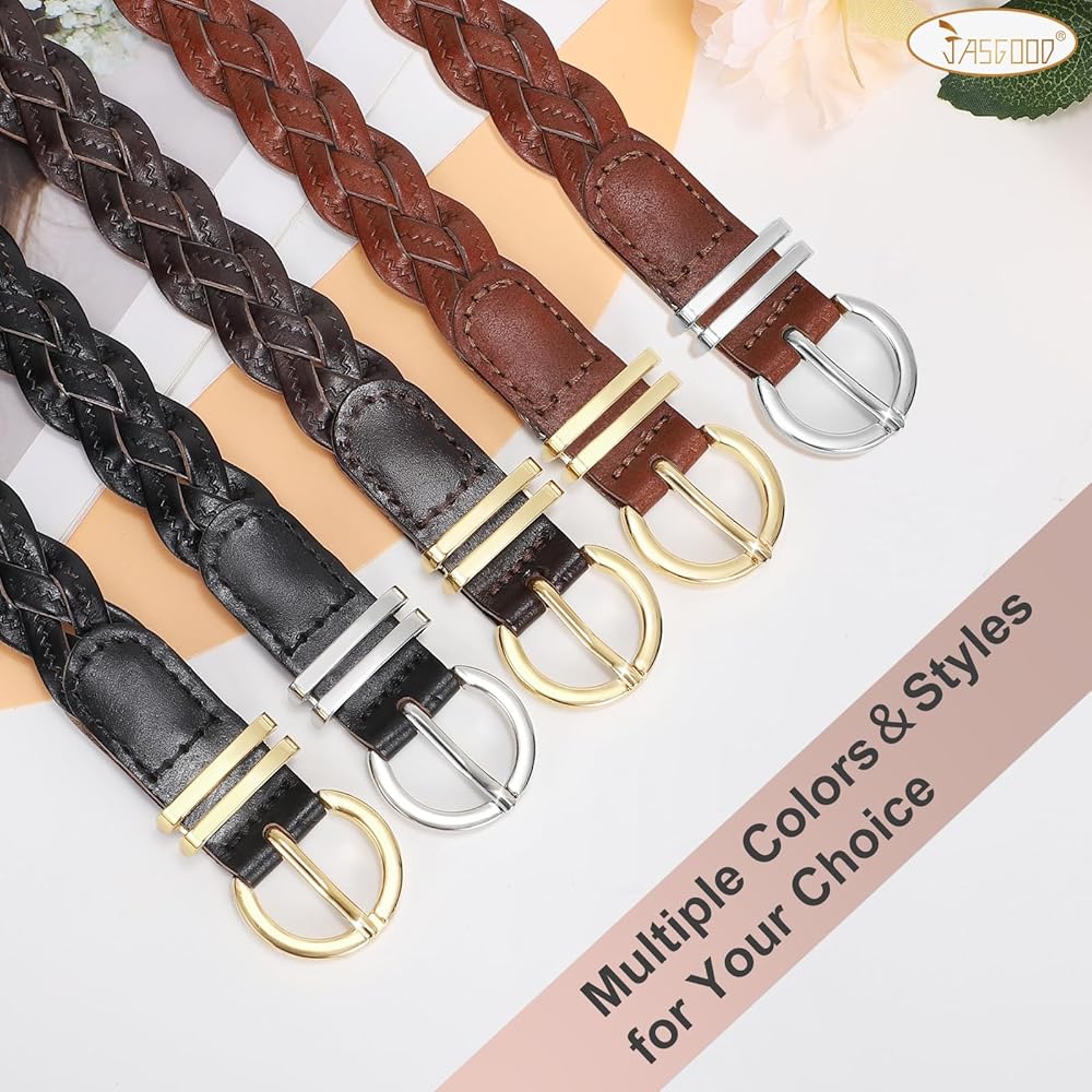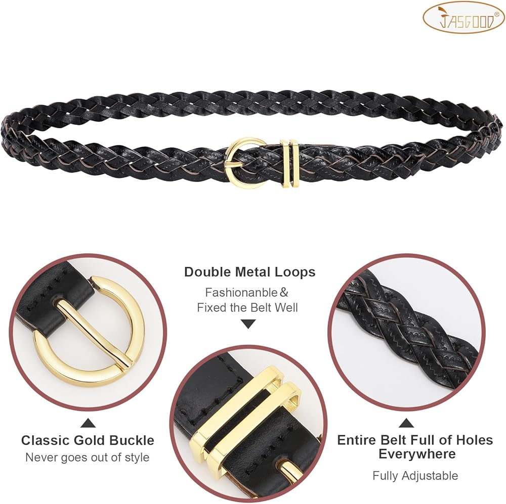 JASGOOD 2 حزمة من الجلد النحيف المضفر للنساء، حزام خصر منسوج رفيع للنساء مع إبزيم ذهبي لفستان الجينز