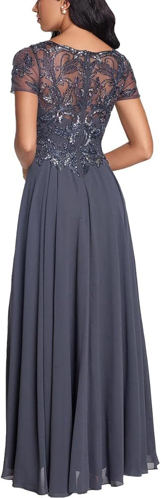 فستان سهرة نسائي من Xscape مطرز بالخرز من الشيفون باللون الرمادي 8P