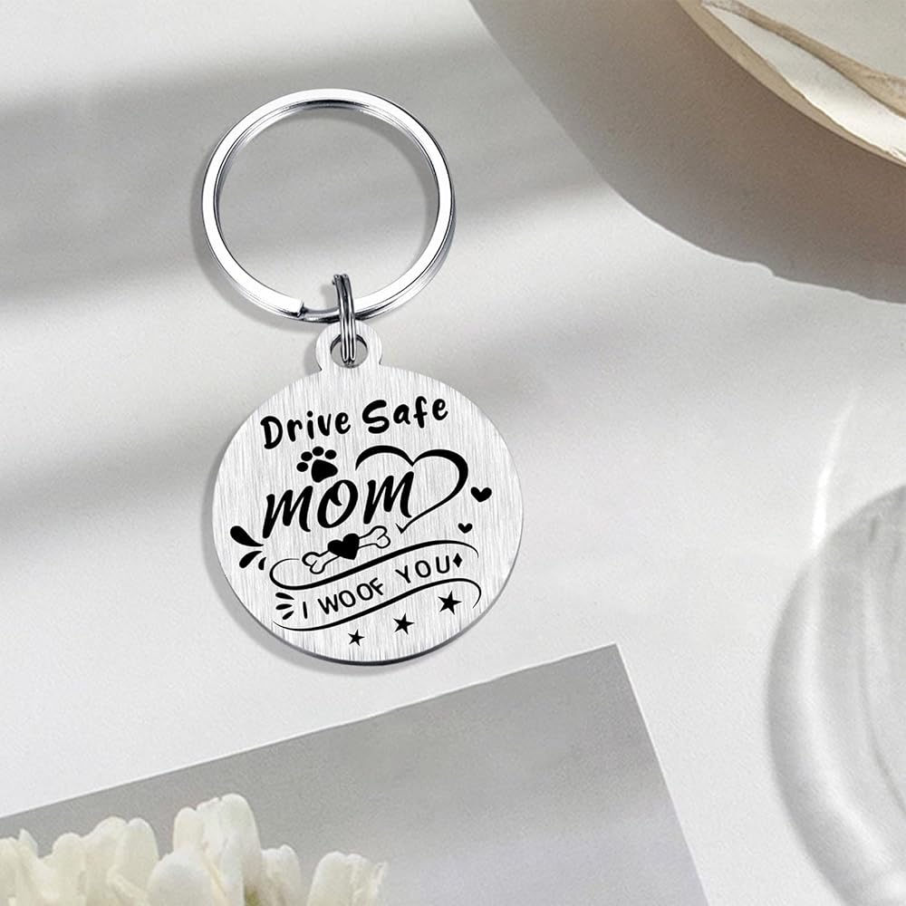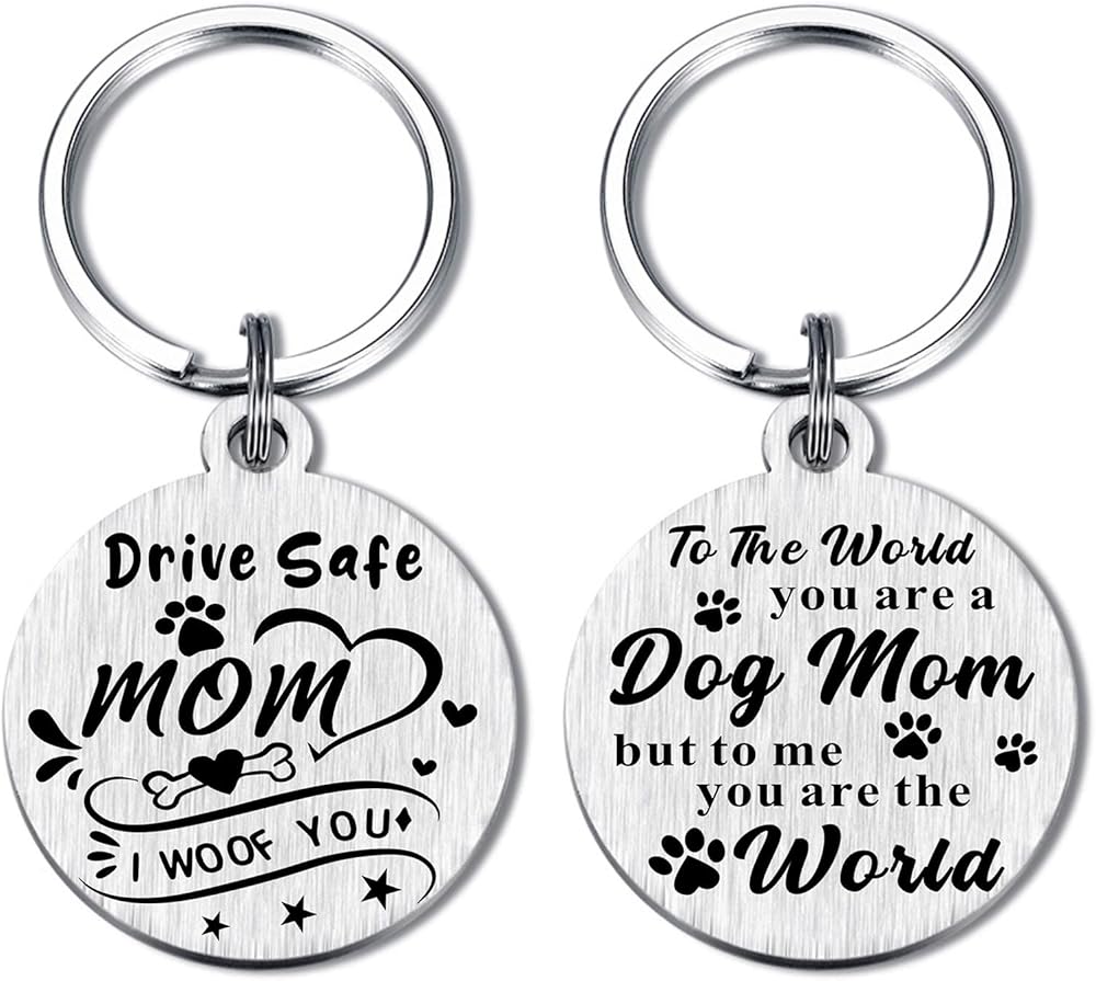 Dog Mom Keychain - Drive Safe Mom, I woof you. To the world you are a dog mom, but to me you are the world.