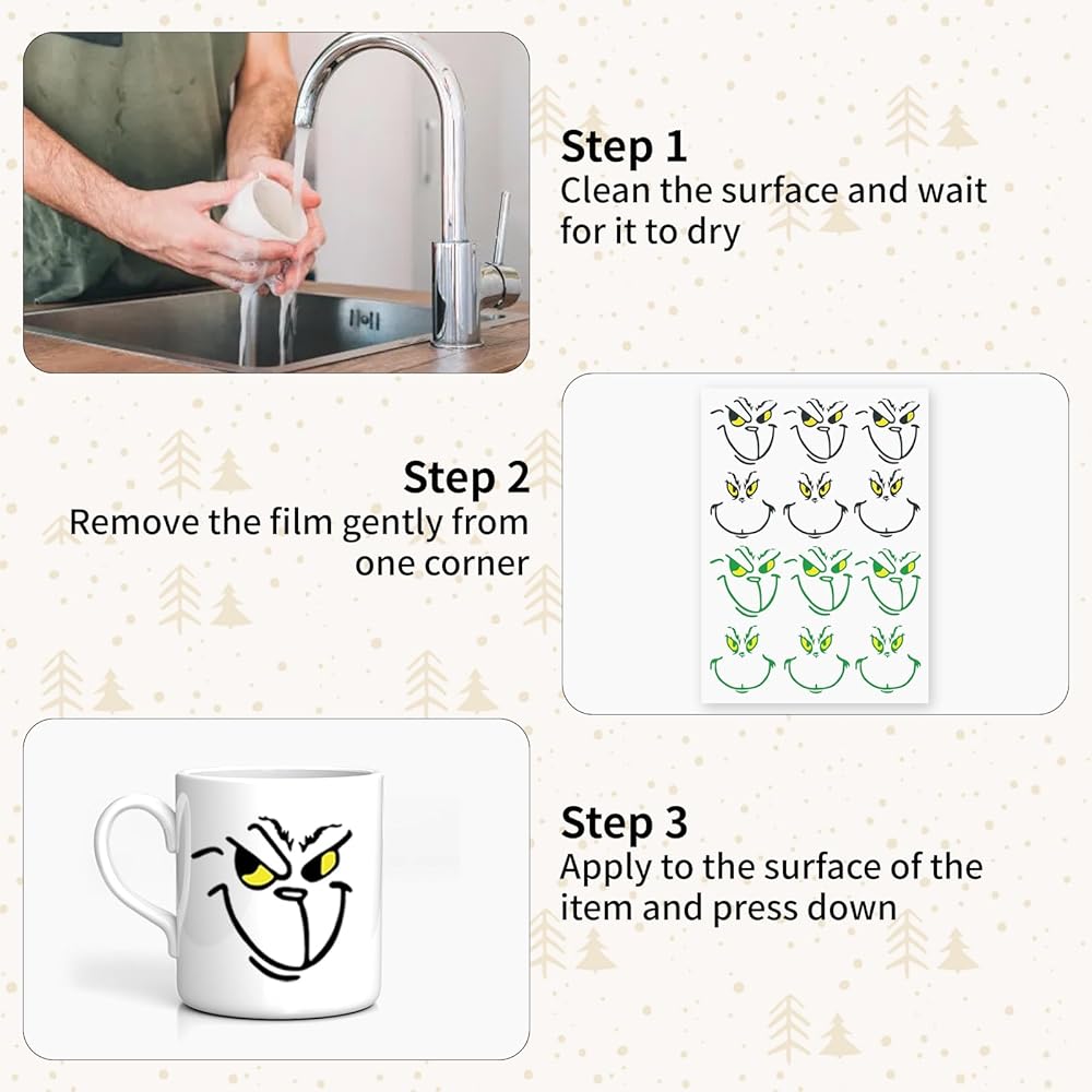 جودة عالية: ملصقات نقل وجه عيد الميلاد الخاصة بنا مصنوعة من بولي كلوريد الفينيل عالي الجودة، ومقاوم للماء، ومقاوم للخدش، ومقاوم للتقشير، وثابت الألوان، وسهل اللصق على أي سطح، ومتانة قوية وتحمل. يمكنك لصق هذه الملصقات اللطيفة على مصابيح عيد الميلاد الخاصة بك