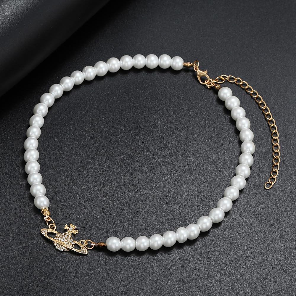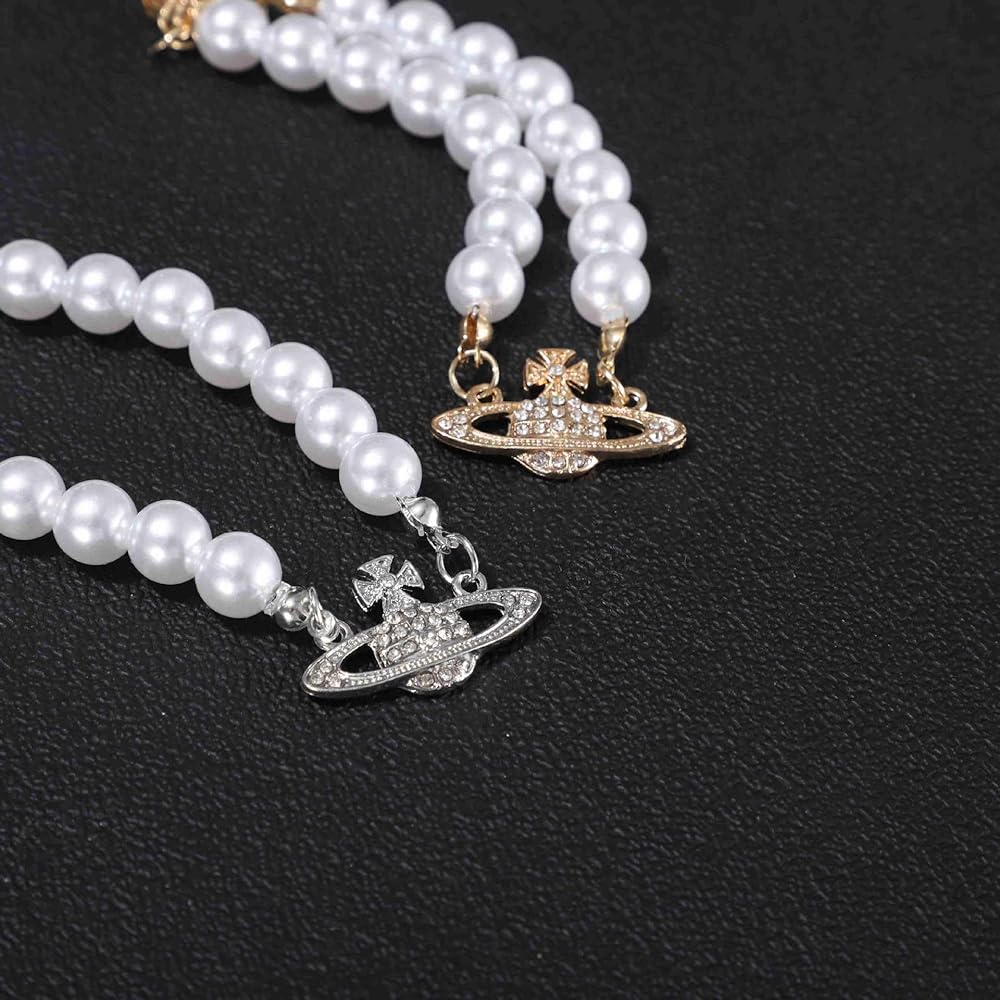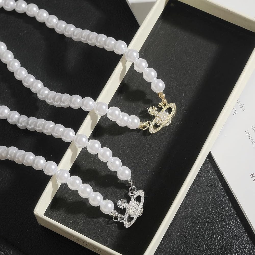 تصميم أنيق: يتميز بحلية زحل ذهبية وفضية مقترنة باللؤلؤ الأبيض، مما يعرض مظهرًا عصريًا فريدًا يسلط الضوء على مزاجك السخي.
