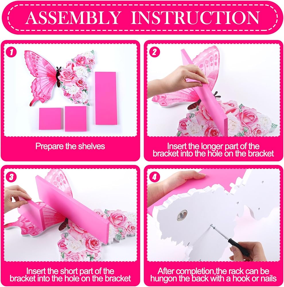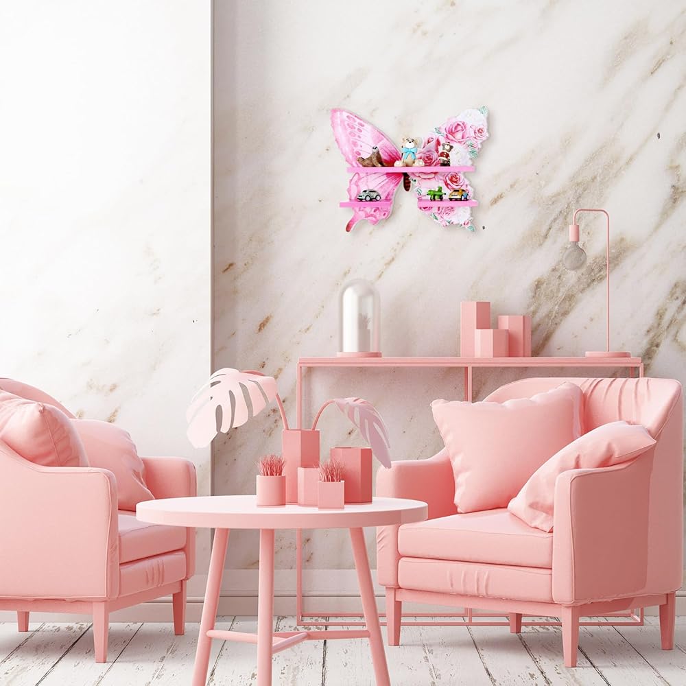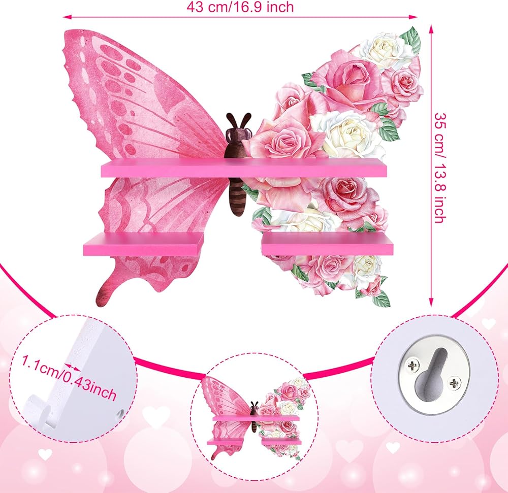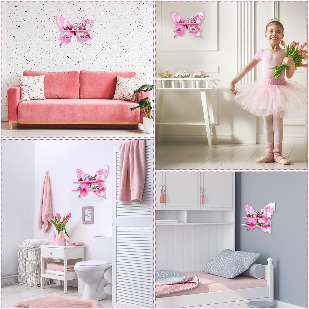 تصميم على شكل فراشة: تتميز أرفف الحائط العائمة لدينا بشكل فراشة جميلة، والتي تبدو أنيقة وجميلة، إلى جانب أنماط جميلة، مثل الزهور والأوراق، بما في ذلك الأخضر الفاتح والأبيض والوردي، مما يخلق جوًا حالمًا، مما يجعل ديكور الفتاة الجميلة الغرفة حلوة وتكسب استحسان الفتيات بسهولة