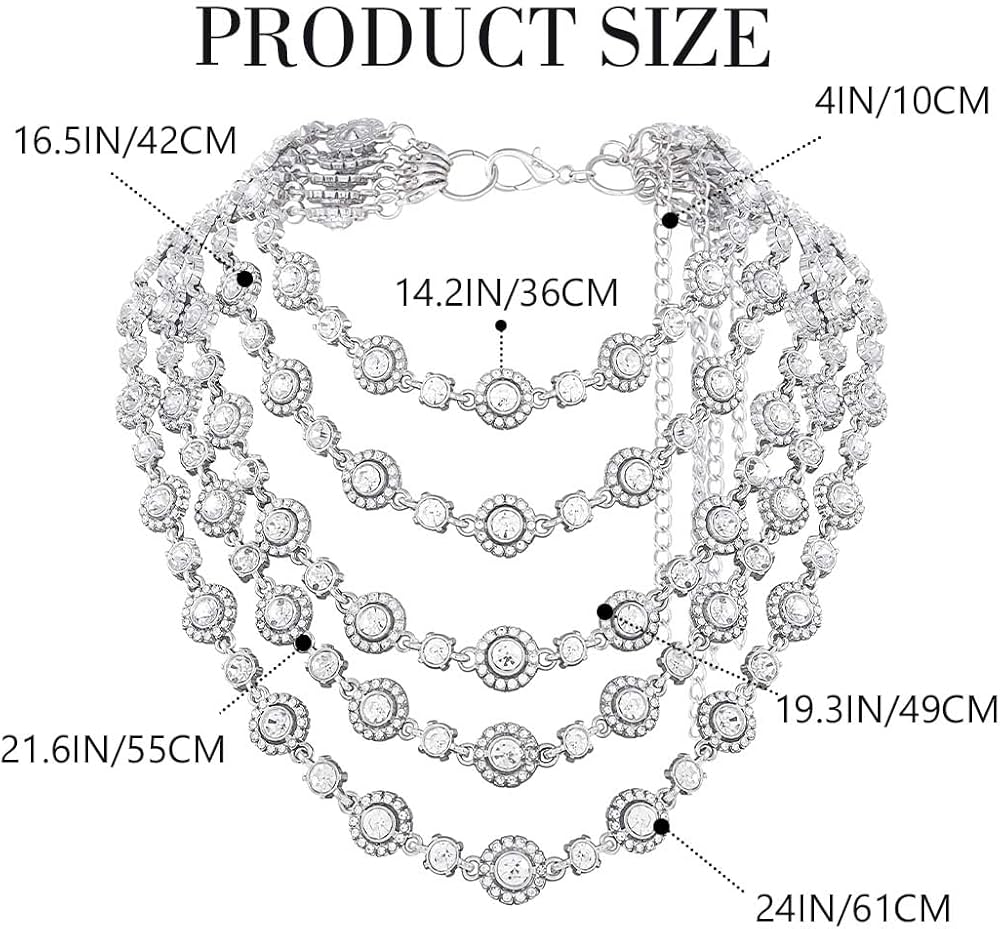 - Rhinestone layered necklace fits for wedding, engagements, bridal shower, proms, and parties.